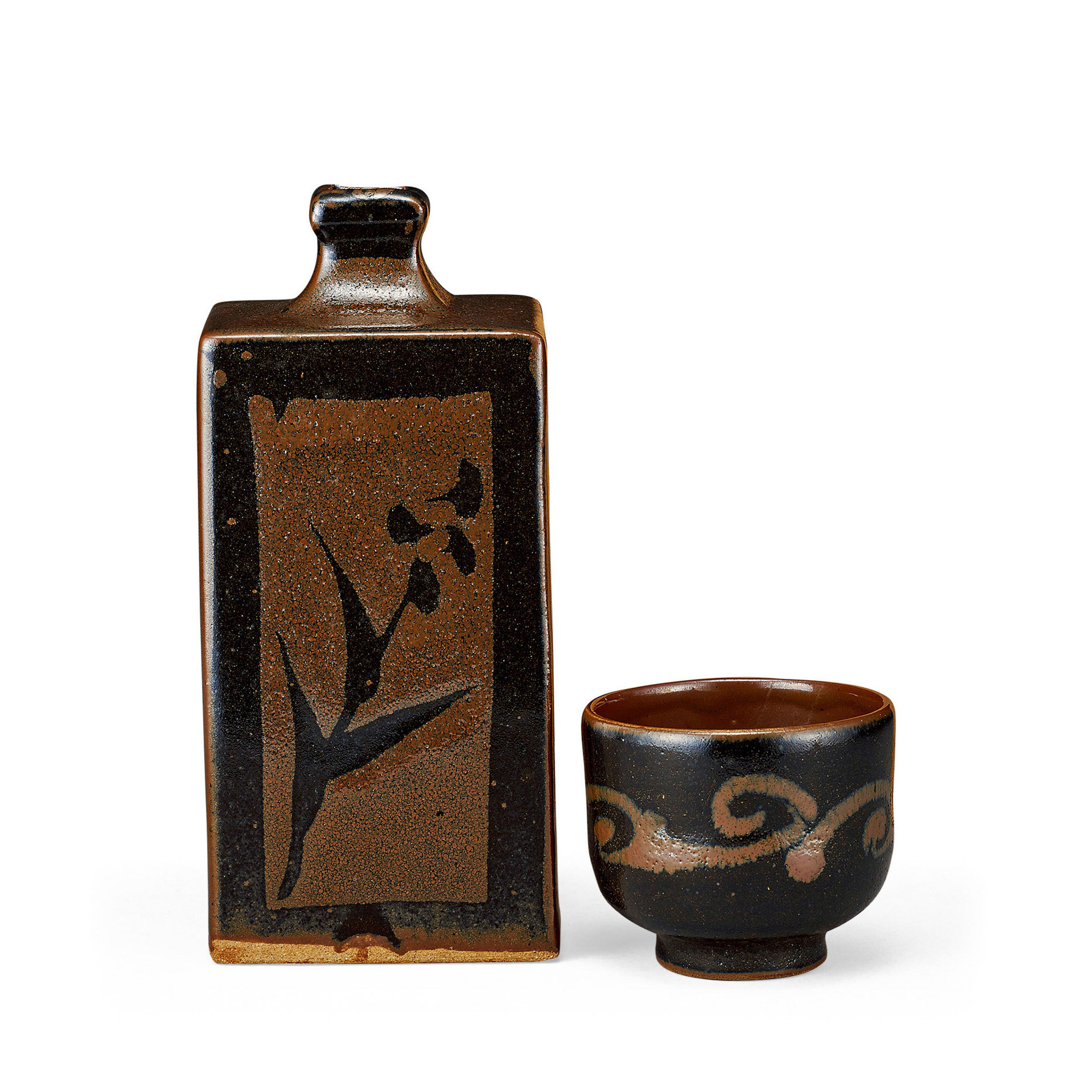 浜田庄司 鐵釉花瓶鐵釉酒杯(共箱)