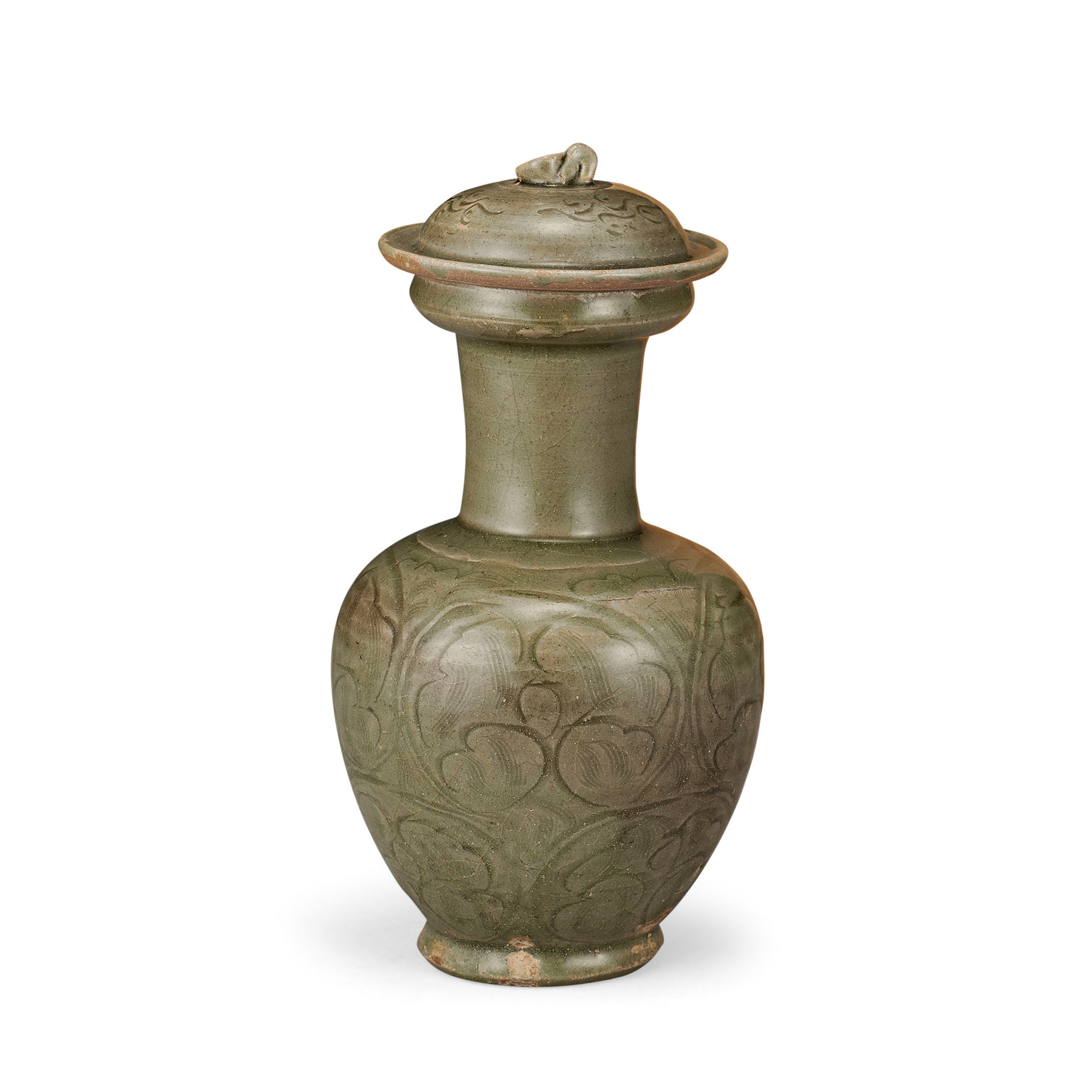 宋 越州窯青磁牡丹花紋蓋壺