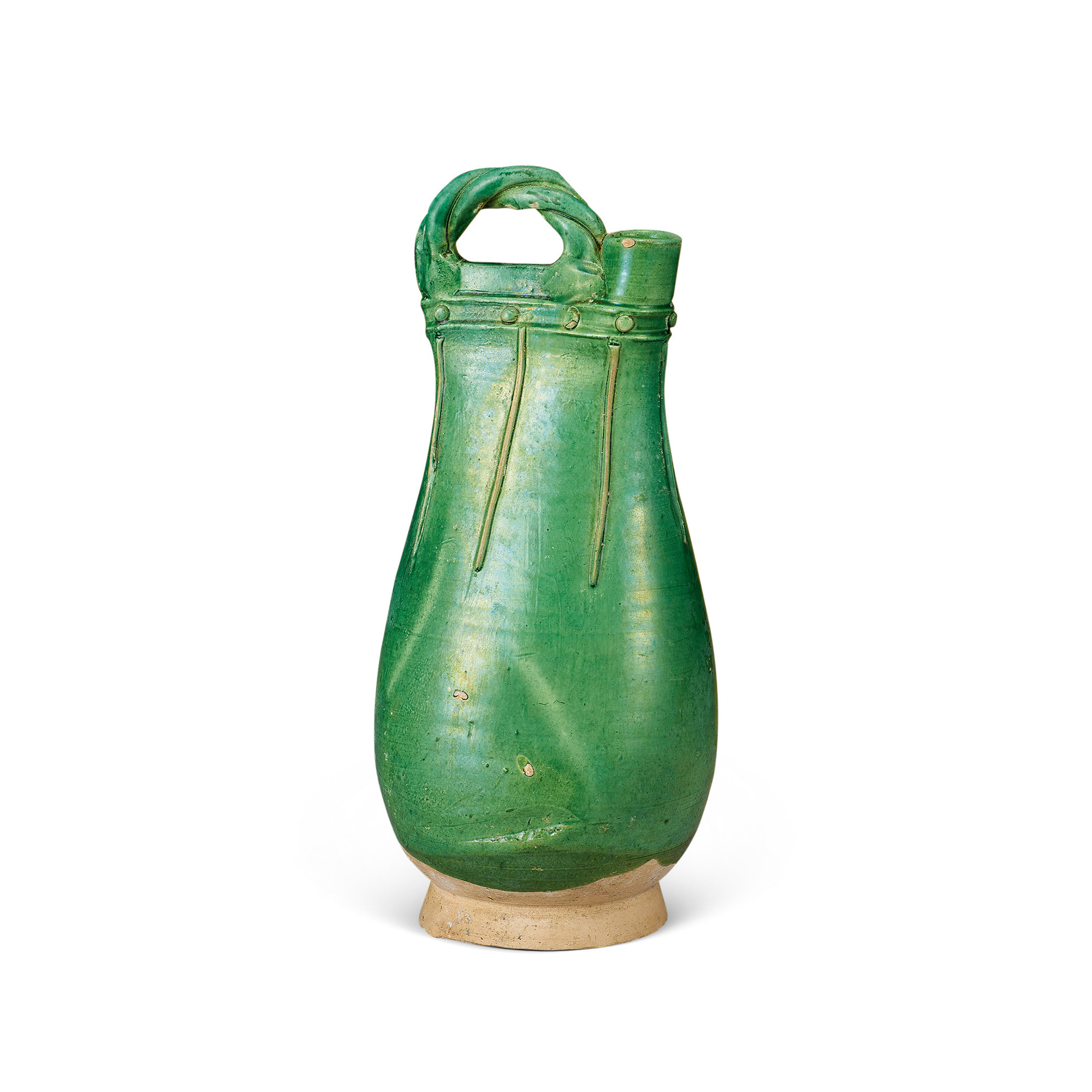 箱書:遼綠釉雞冠瓶 竹世 印:竹世