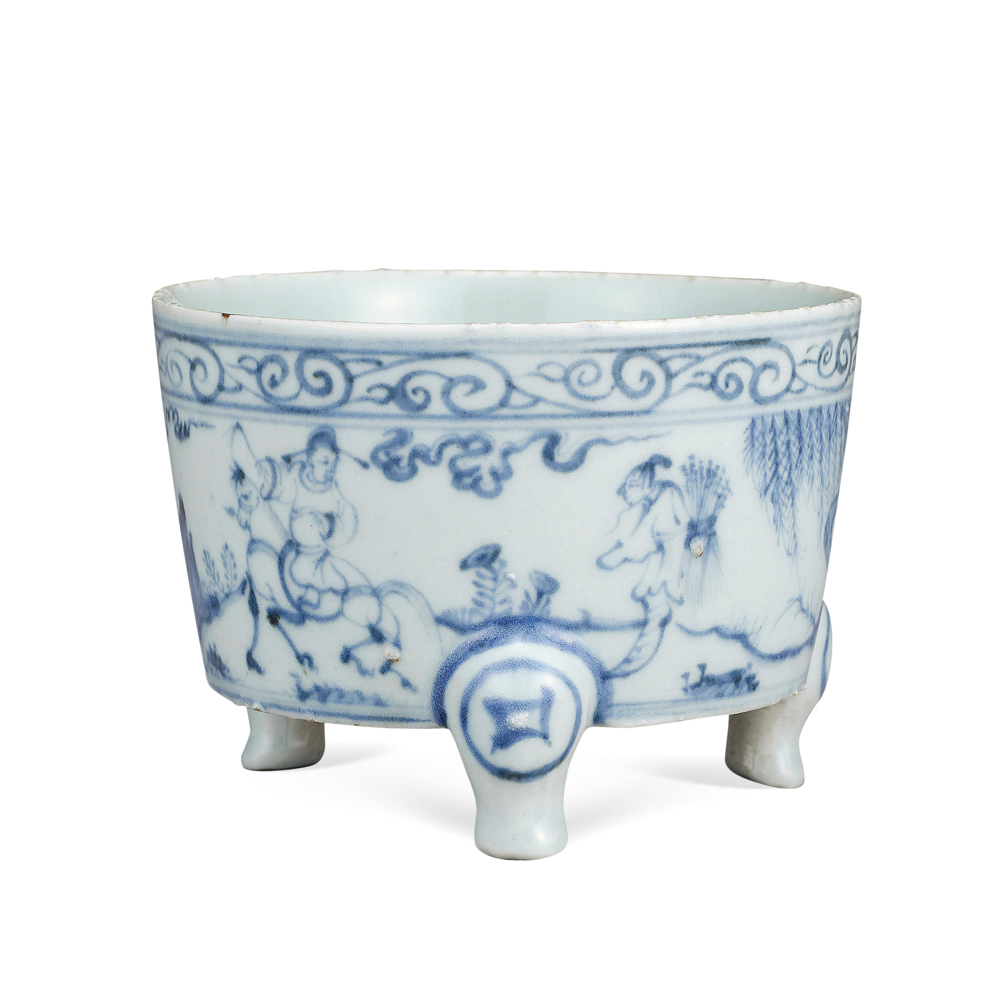清 染付人物紋三足香炉