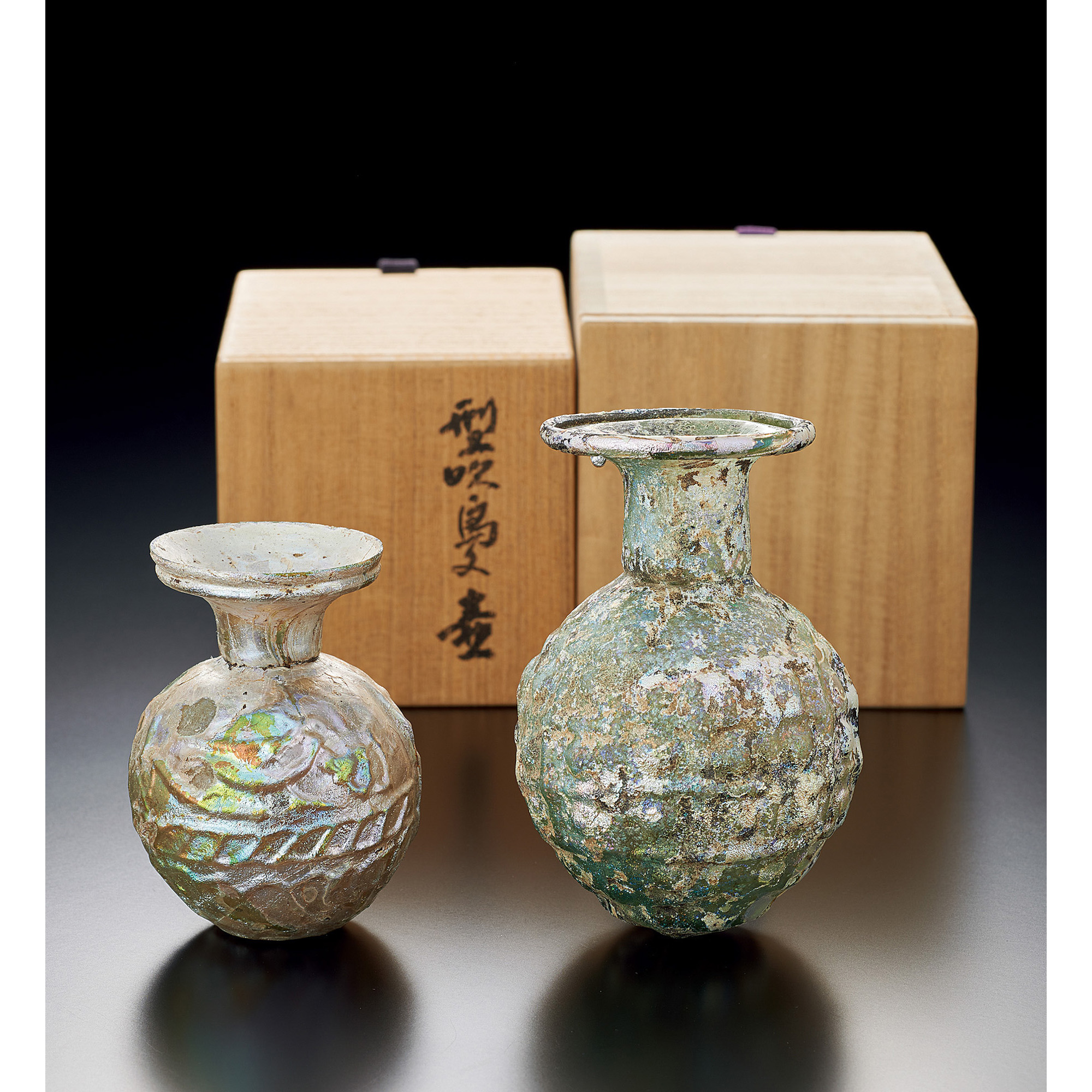 ローマングラス型吹紋壺2点(加藤卓男識箱)
