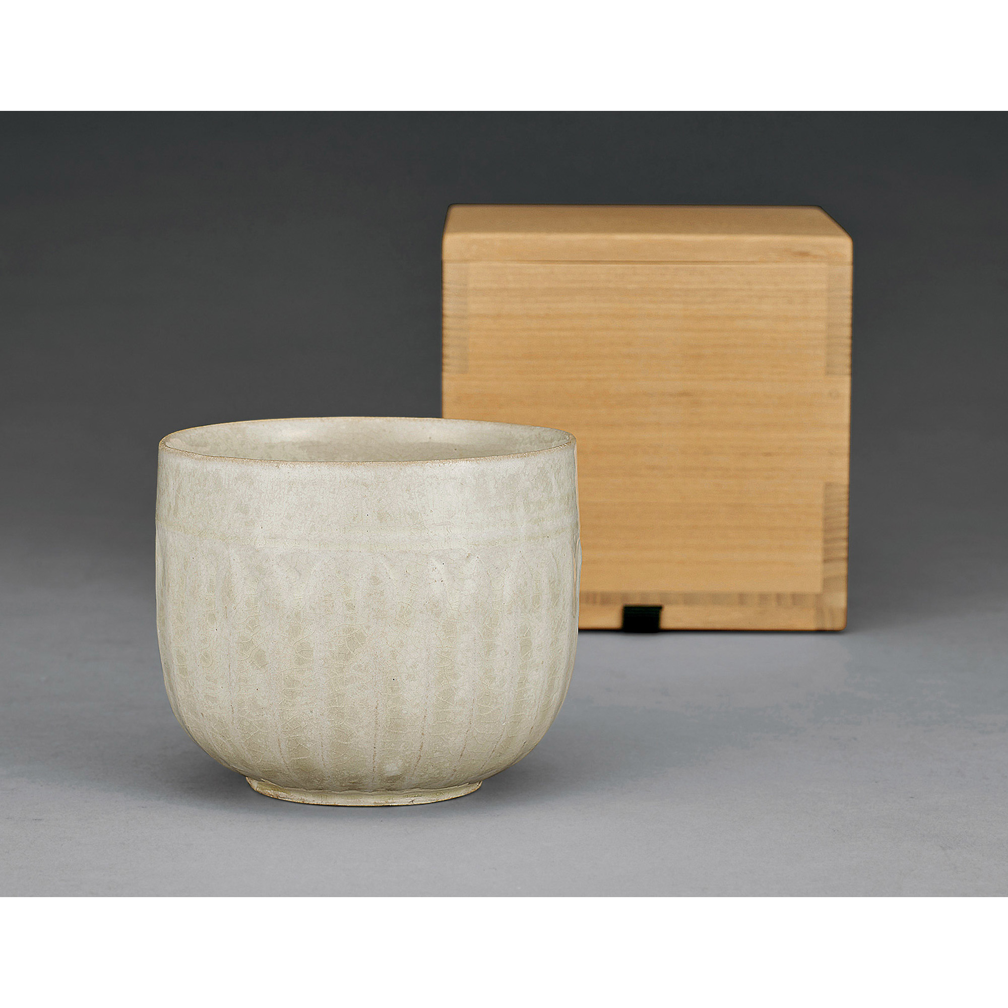 箱書:十四世紀安南白磁鎬筒茶碗 竹世 印:竹世