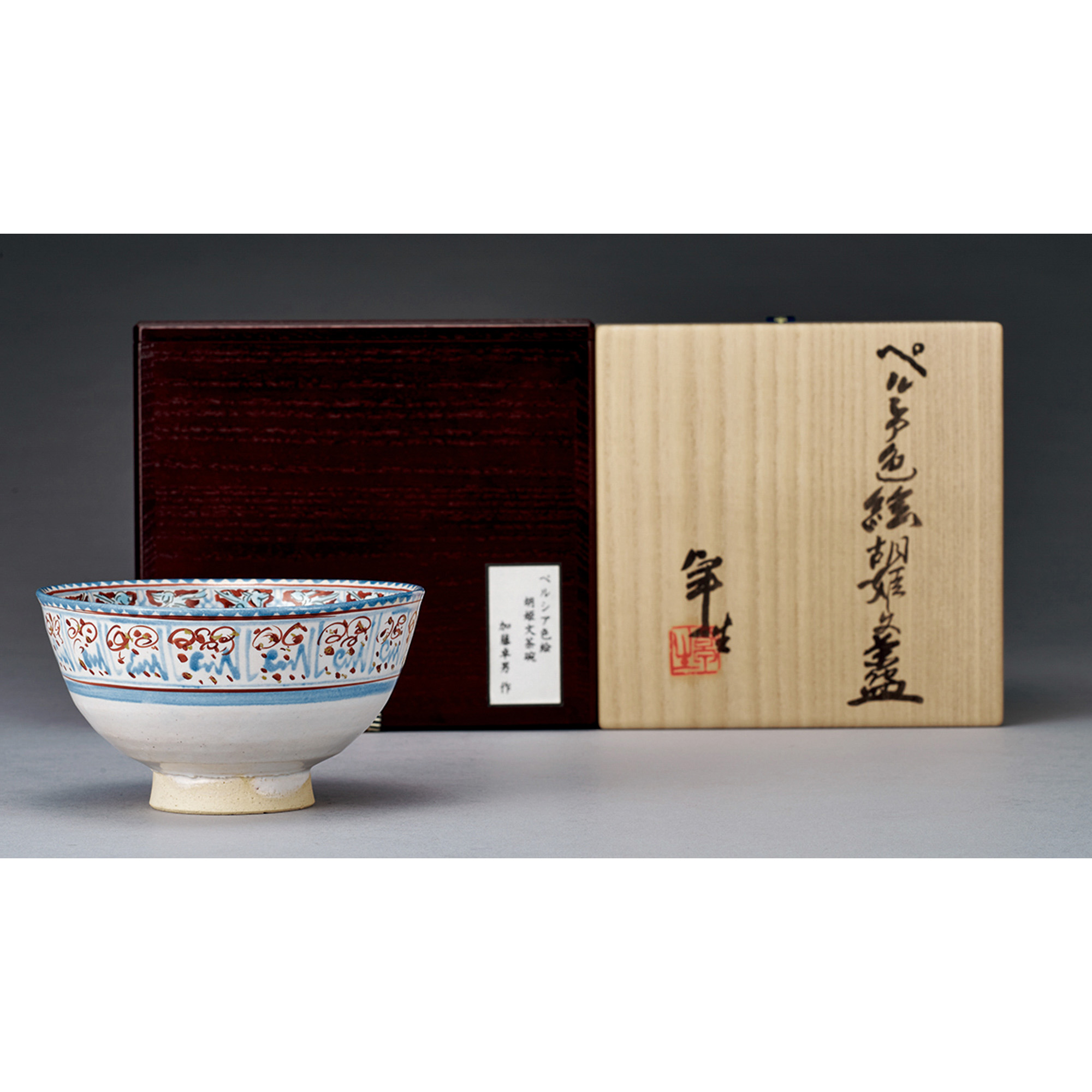 加藤卓男 ペルシャ色絵胡姫紋茶碗(共箱)