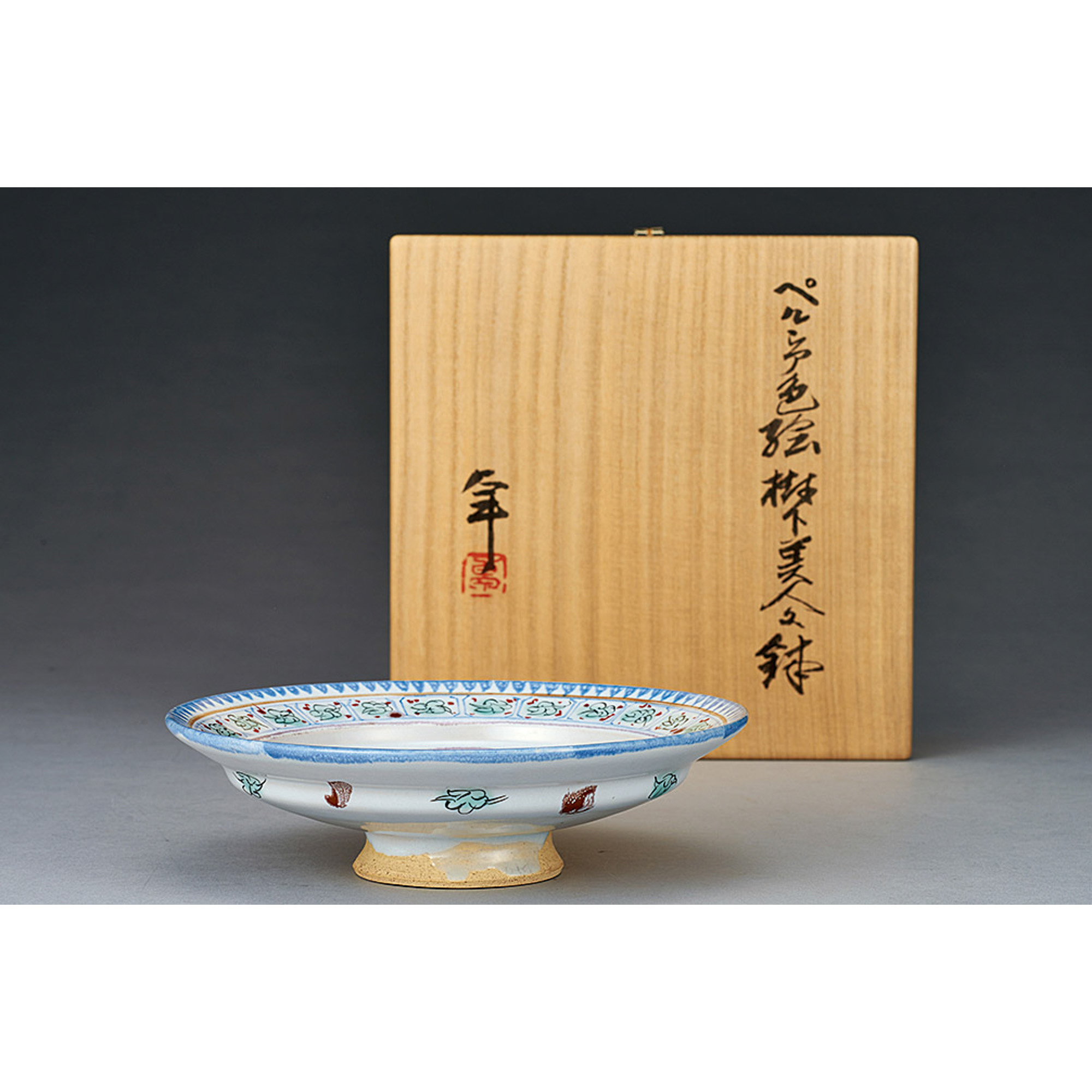 箱書:ペルシャ色絵樹下美人紋鉢