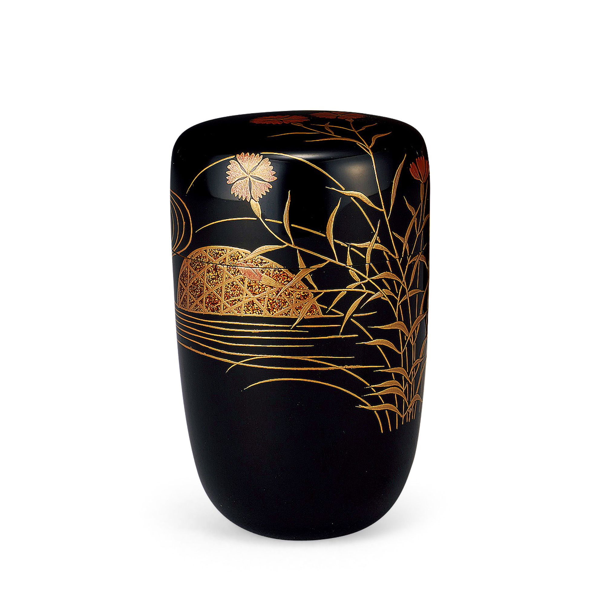 松永松寛 蒔絵撫子流水紋細棗(共箱)