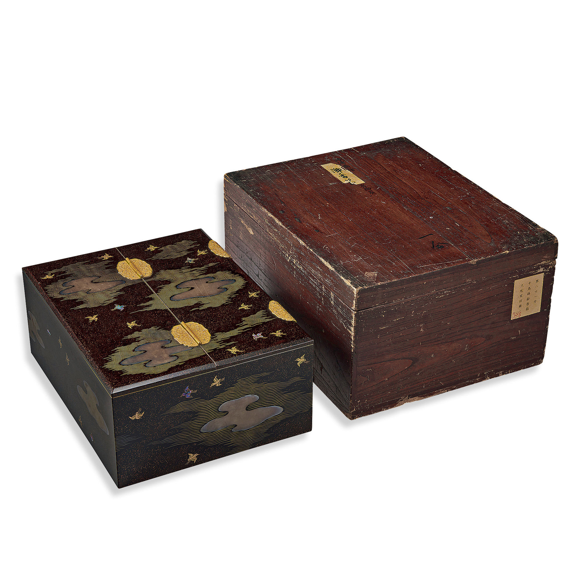 箱書:第八十一号千鳥蒔絵香箱久松家旧蔵