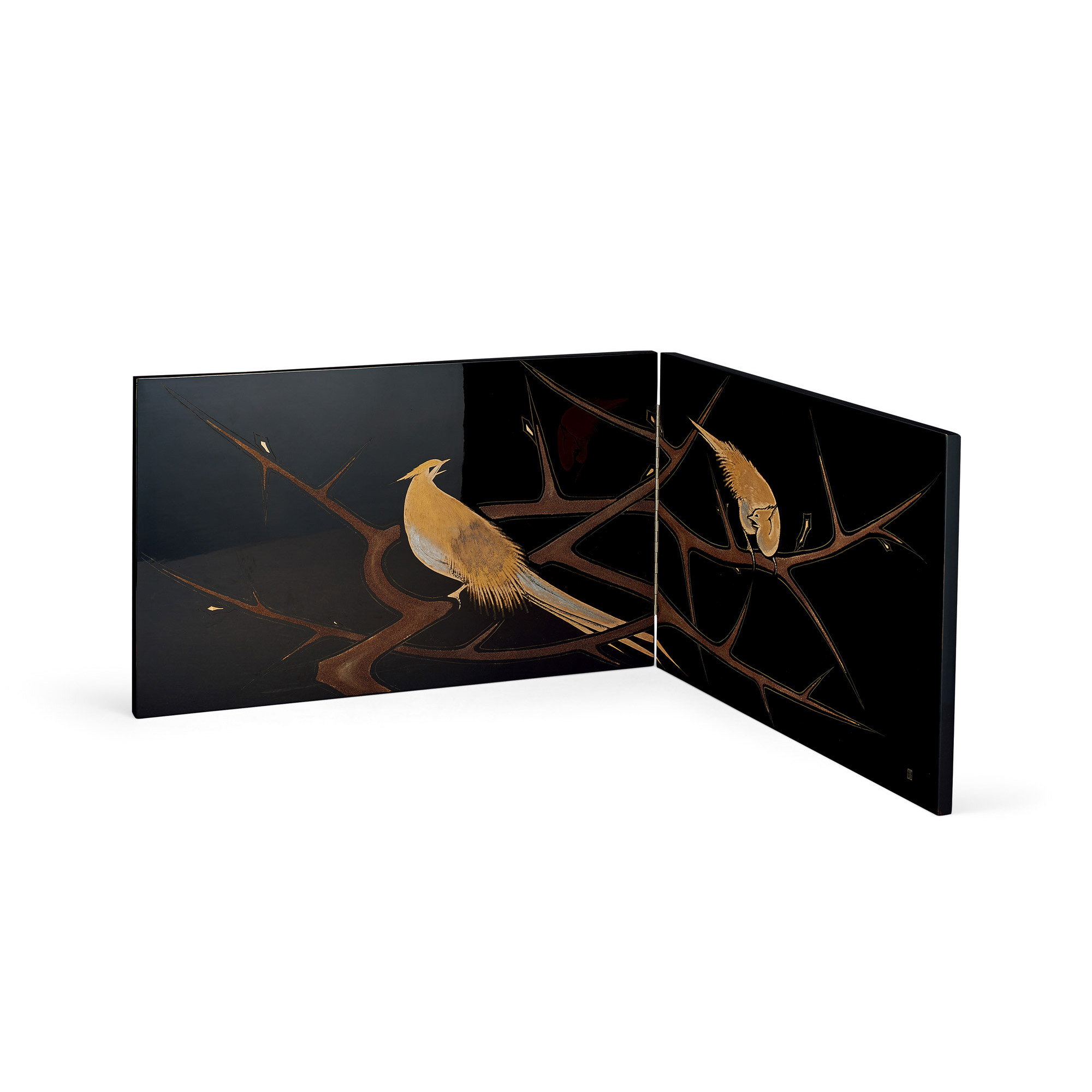 広堂刻 彫漆蒔絵花鳥紋屏風(共箱)
