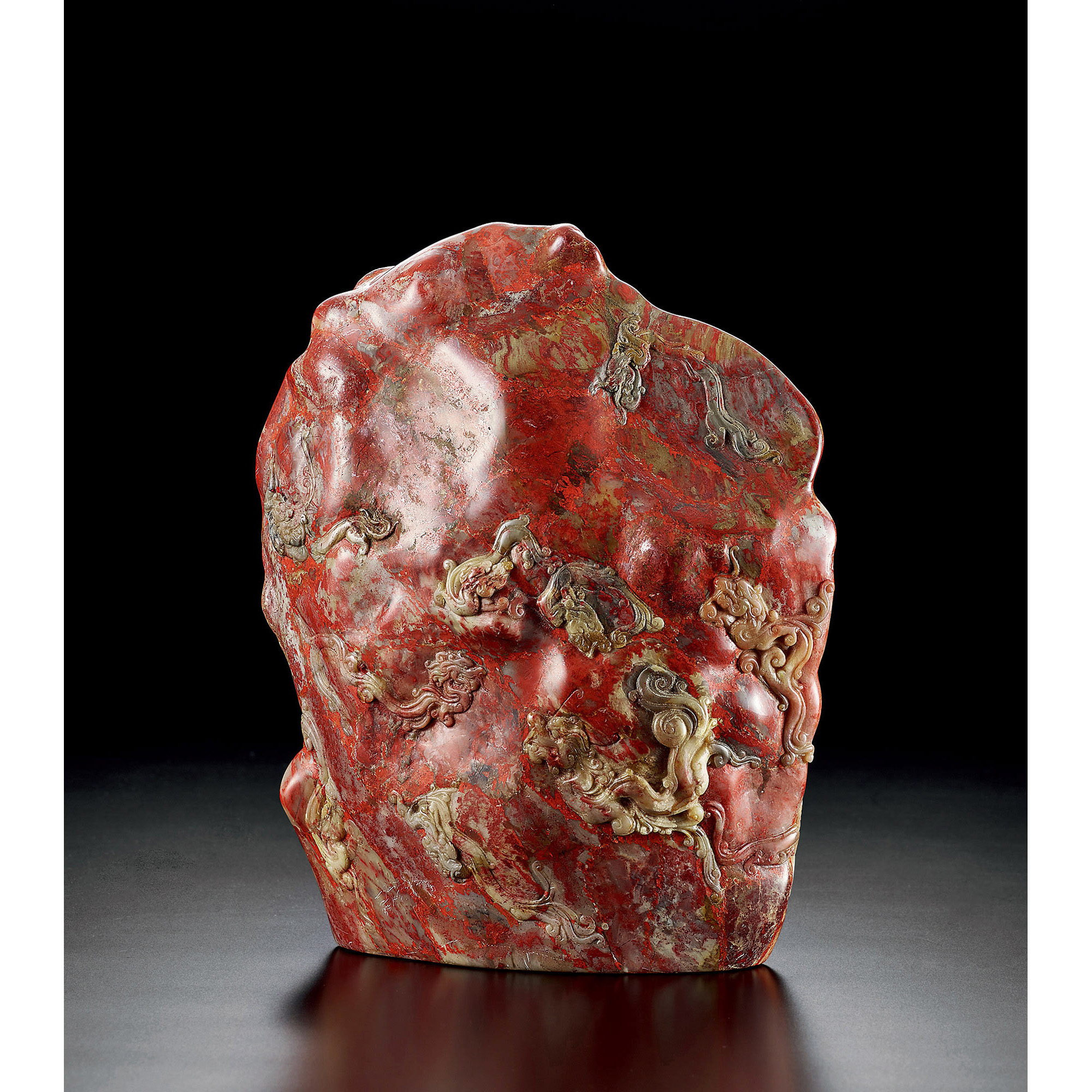 鶏血石螭龍紋置物
