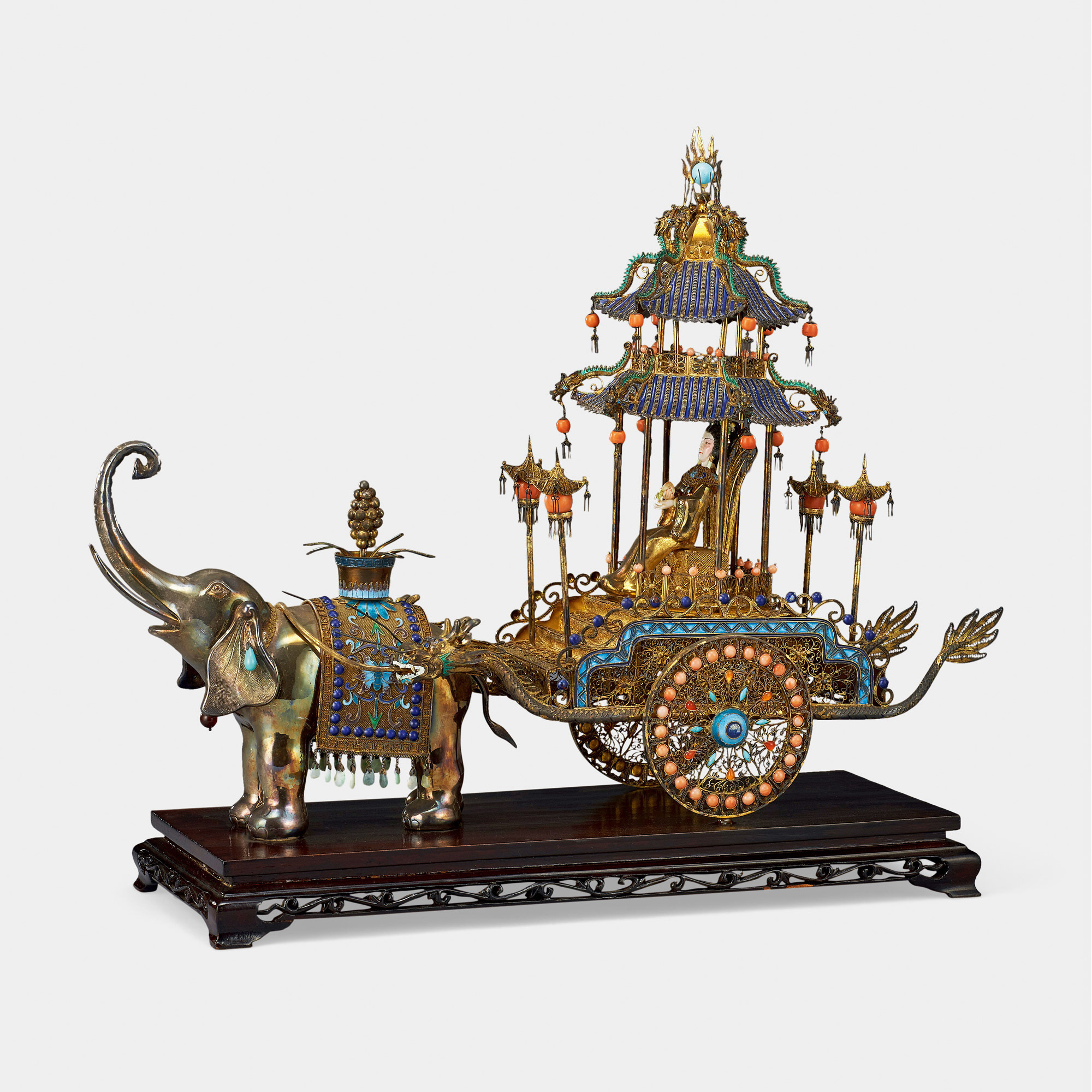 銀製象嵌宝石置物