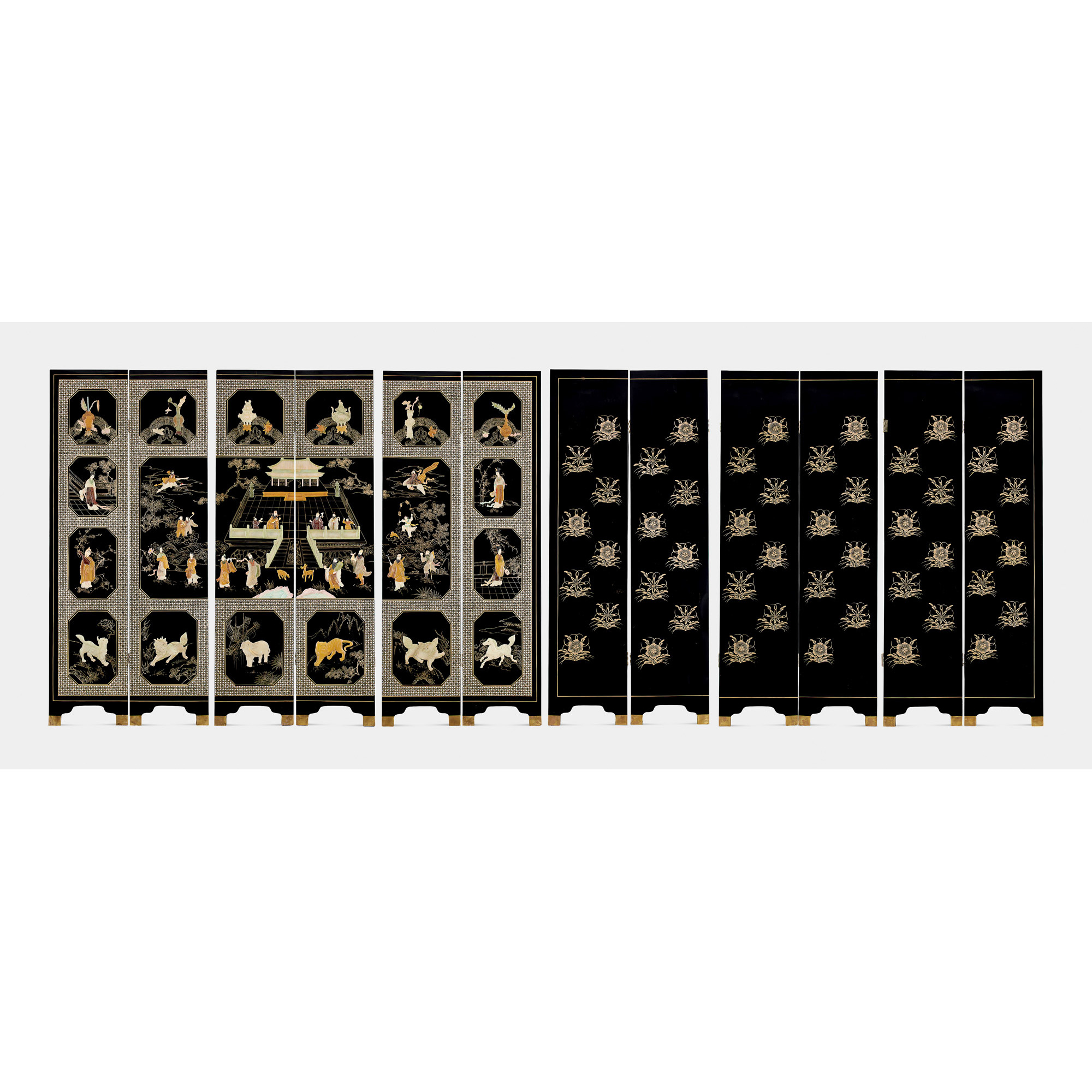 黒漆嵌石人物図屏風