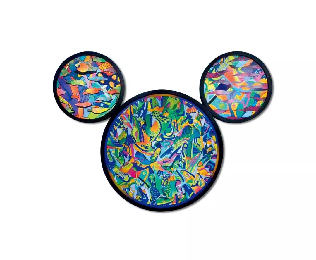 遠看抽象的顔色裏却藏著無數雙造型各異的鞋子,而這些鞋子又被收攏在一個米老鼠的輪廓裏。也許它們就代表著那些因特立獨行而聚在一起的開拓者們,潮流是追不上的,只能由我們自己創造。每個人的脚下都藏著不能說的秘密,淩亂著,分不清楚。真實和幻覺,歷史和未來,或許鞋子們知道答案。在你的脚下是未知的一切。