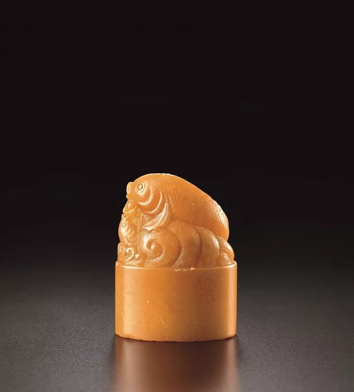 清 丁鶴盧藏款田黃魚紐印