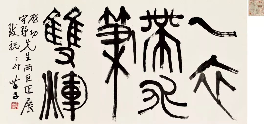 Lot 2    黃苗子(1913-2012) 篆書「一衣帶水筆雙輝」