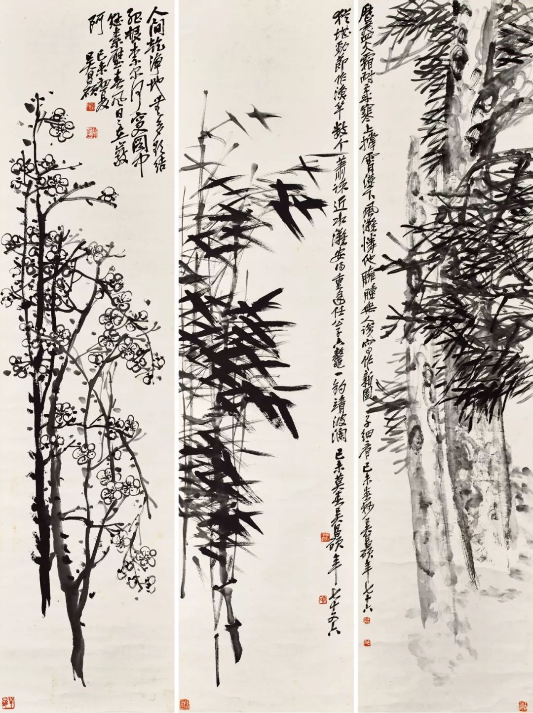 Lot 4    吳昌碩(1844-1927) 松竹梅三條幅
