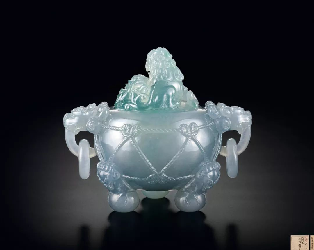 Lot 31    清 冰種翡翠太獅少獅鈕繩紋三足爐
