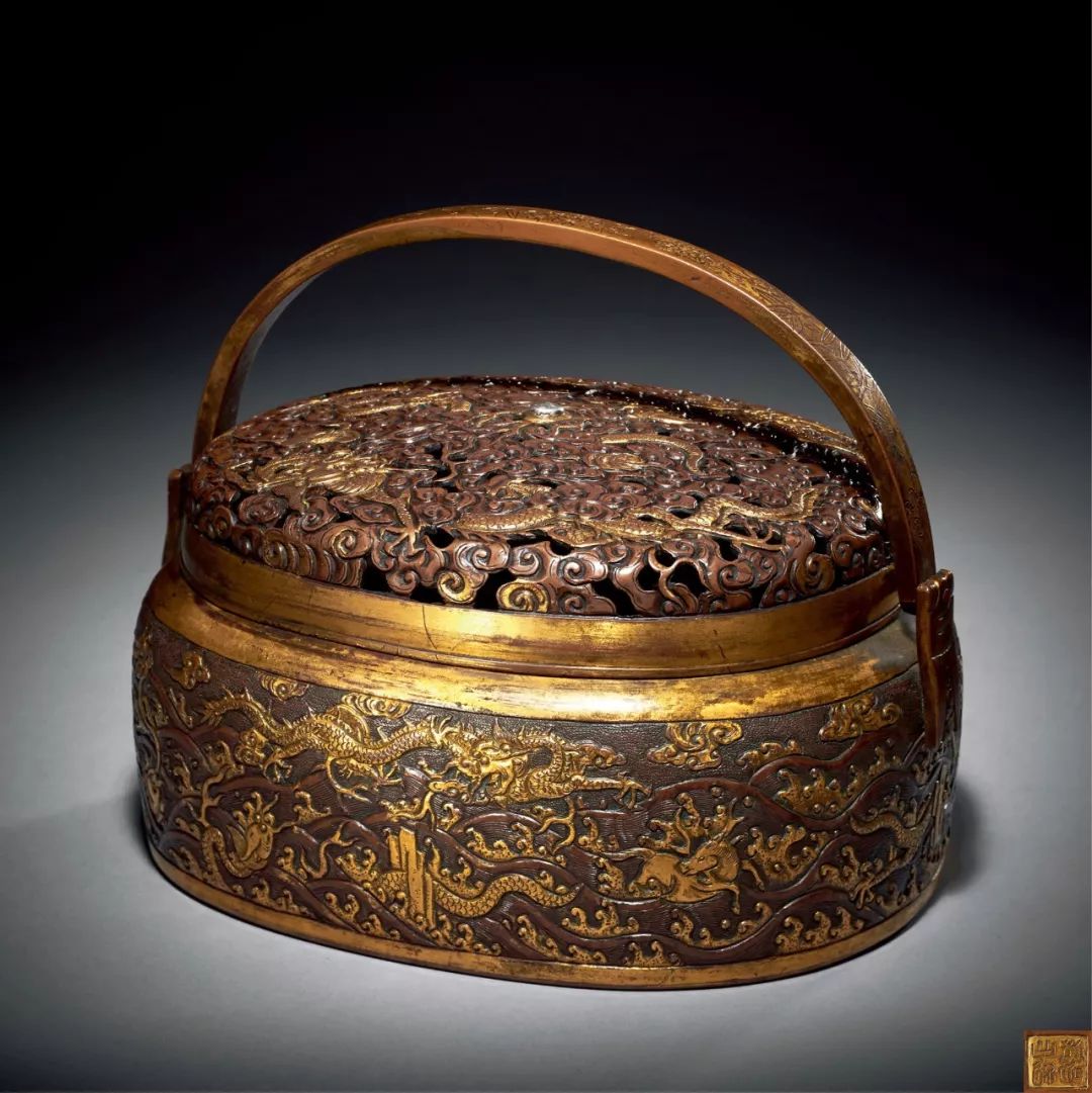 Lot 32    明萬曆 胡文明製銅鎏金雲龍海獸紋手爐