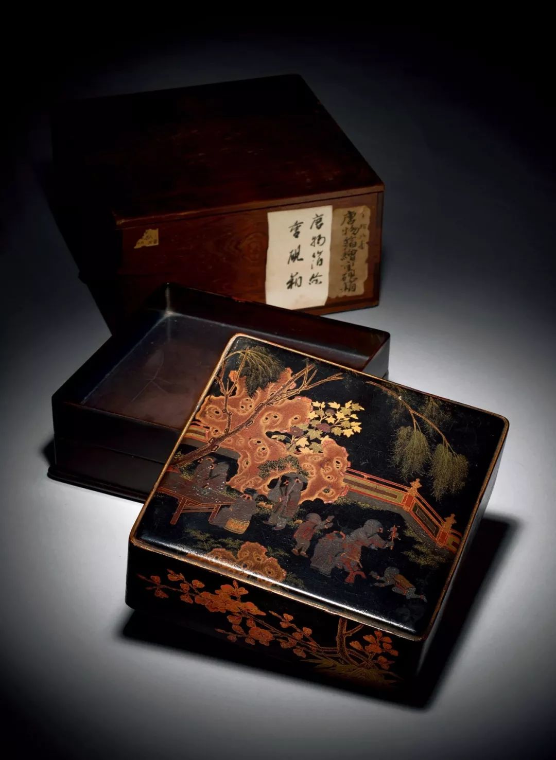 Lot 38    清康熙 黑漆箔繪嵌螺鈿嬰戲紋雙層盒