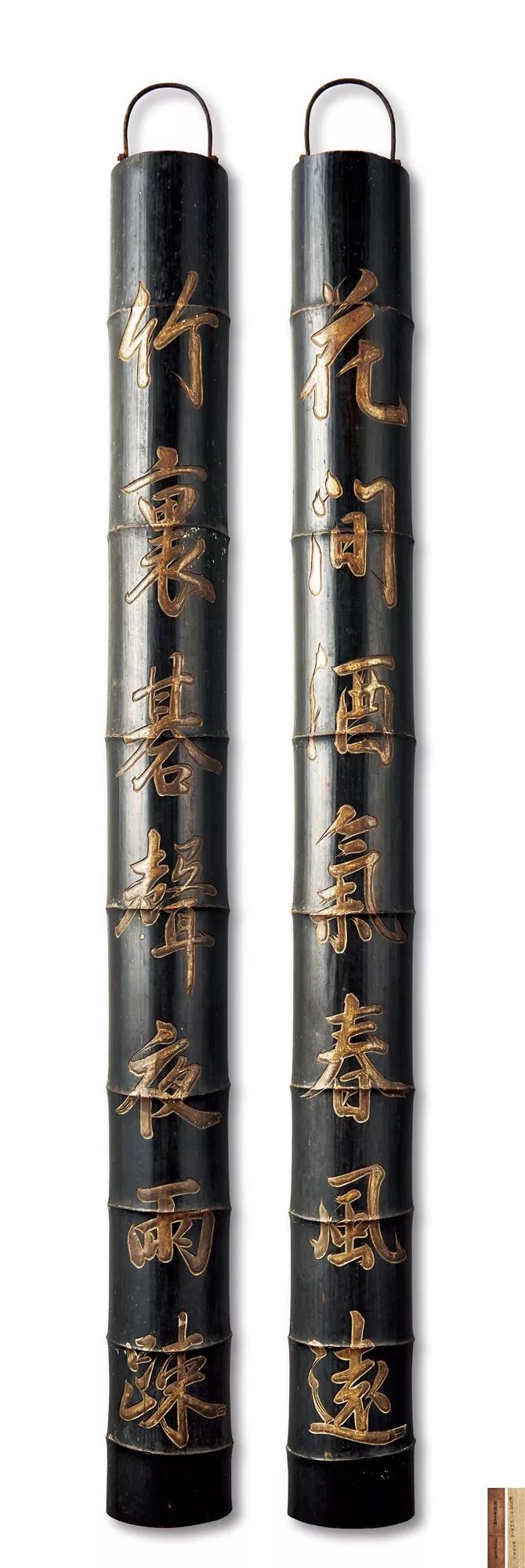 Lot 42    清乾隆 竹製御筆金漆楹聯掛屏一對