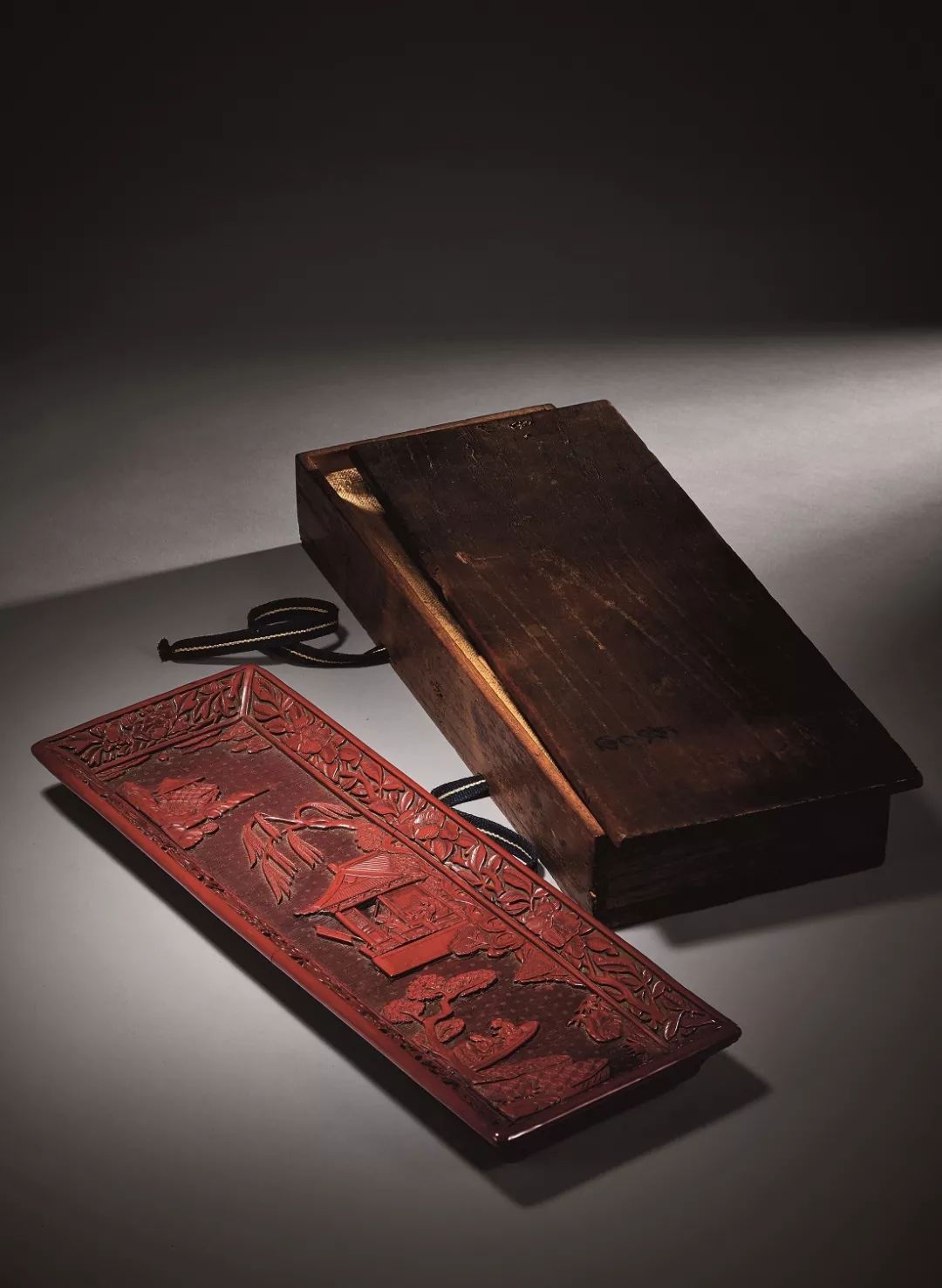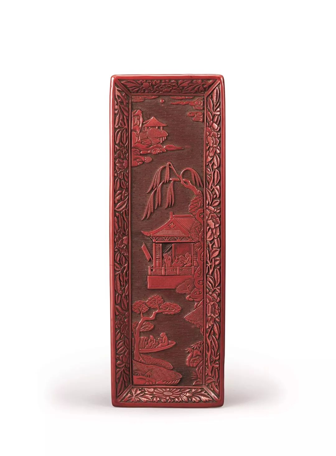 明初 剔紅山水人物雕軸盆
