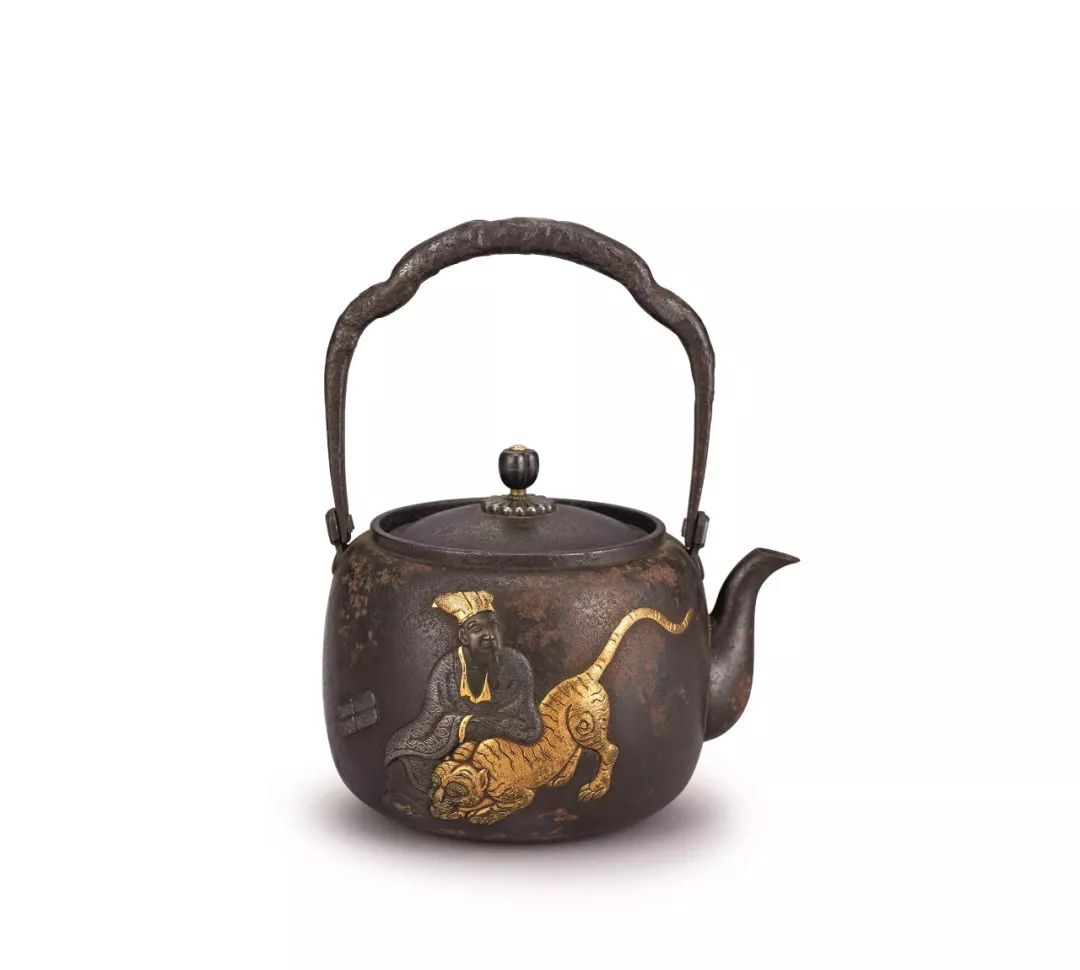 羲光刻 金銀象嵌人物虎圖鐵壺