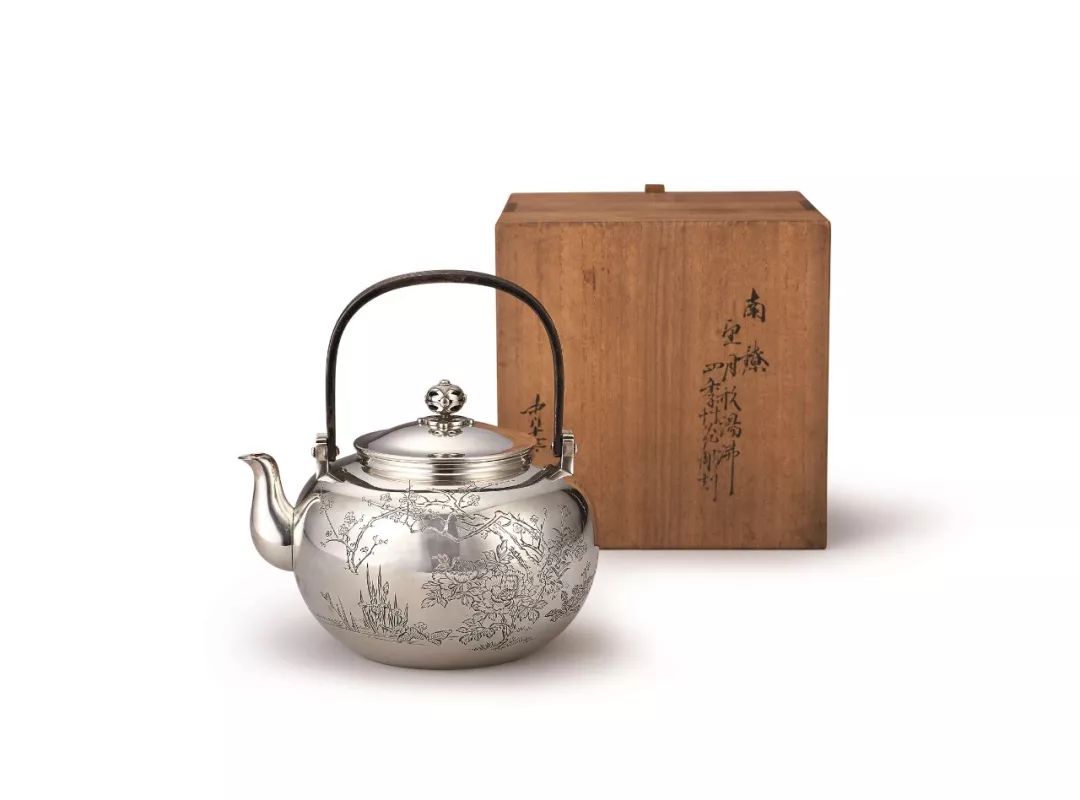 箱款:南鐐望月形湯沸四季花彫刻 中川十世浄益造