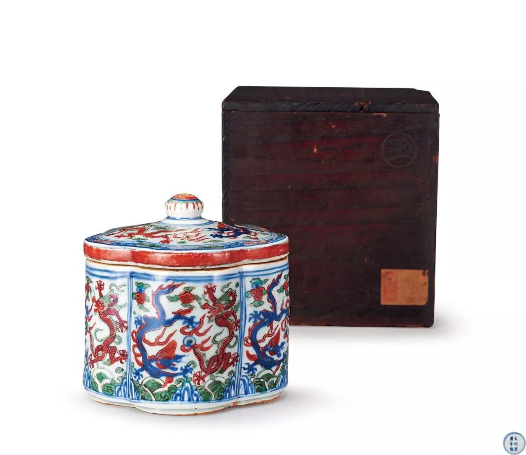 明萬曆 青花五彩龍鳳紋寶珠頂鈕花瓣式蟋蟀罐