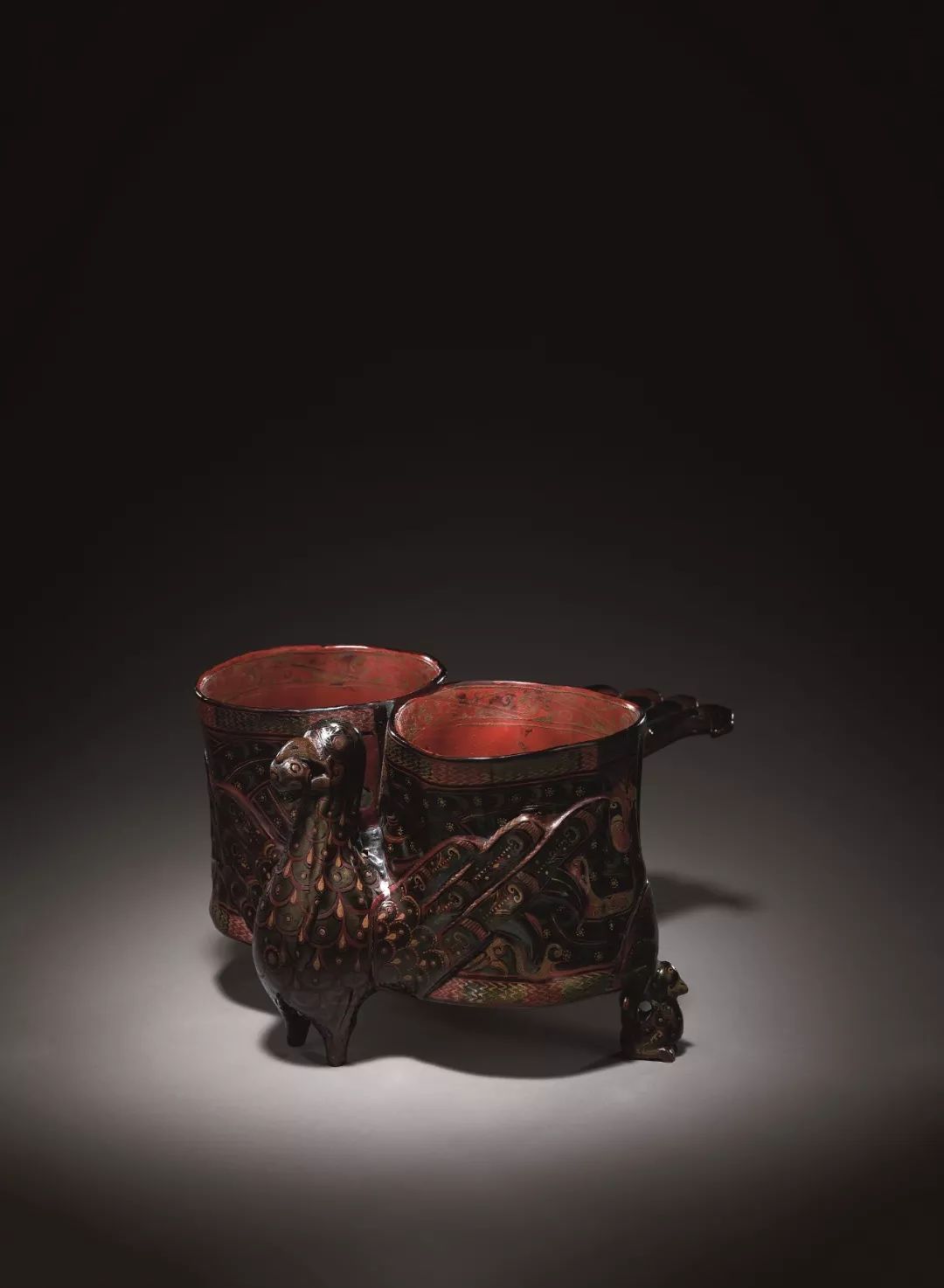 戰國 彩漆鳳形雙聯杯