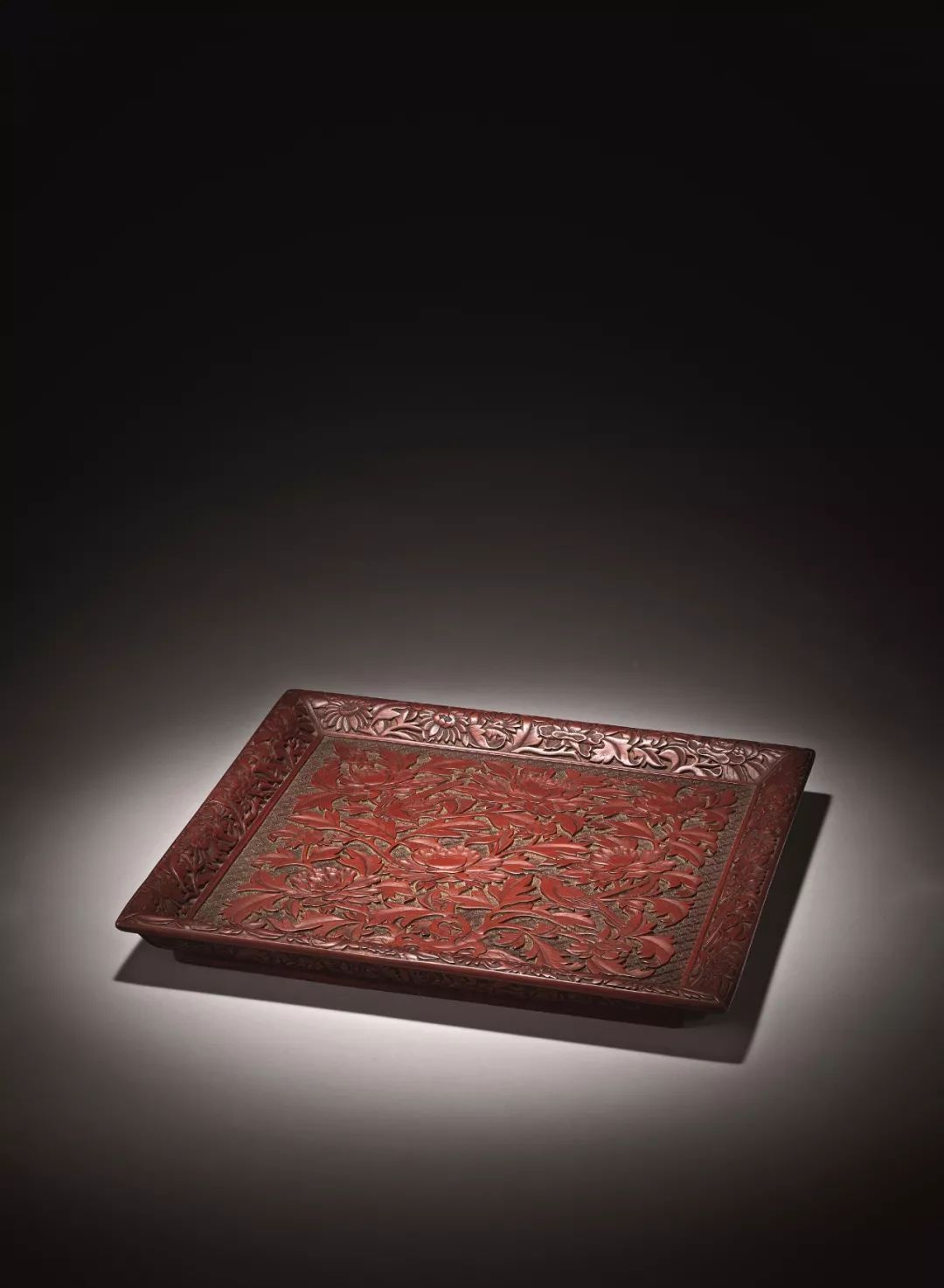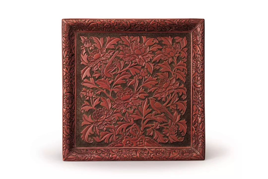 明 剔紅花鳥紋方盤