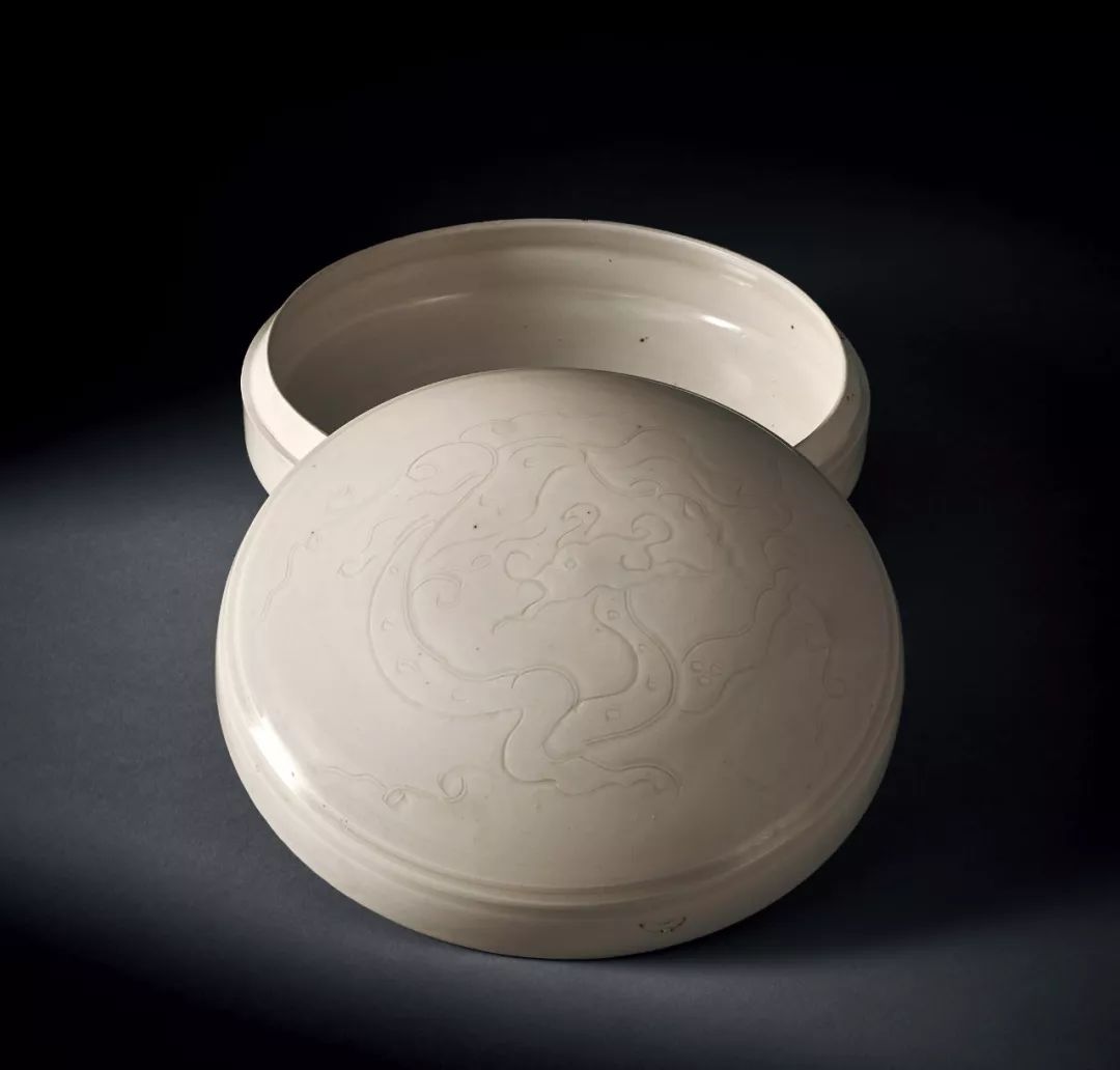 宋 定窯白釉暗刻雲龍紋蓋盒