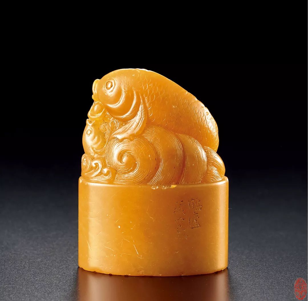 清 丁鶴盧藏款田黃魚紐印