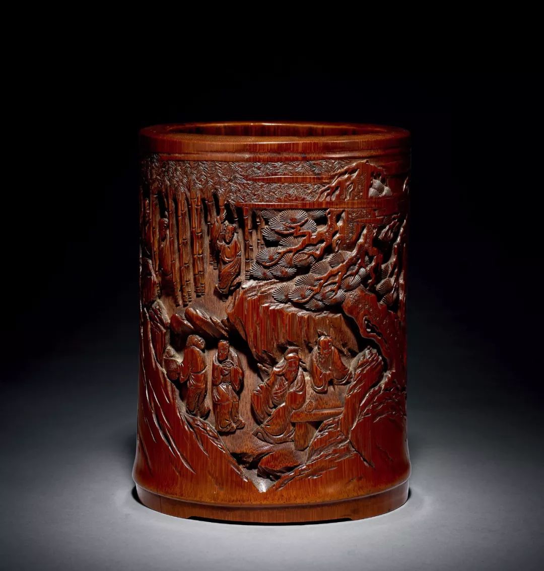明晚期 竹雕飲中八仙圖筆筒
