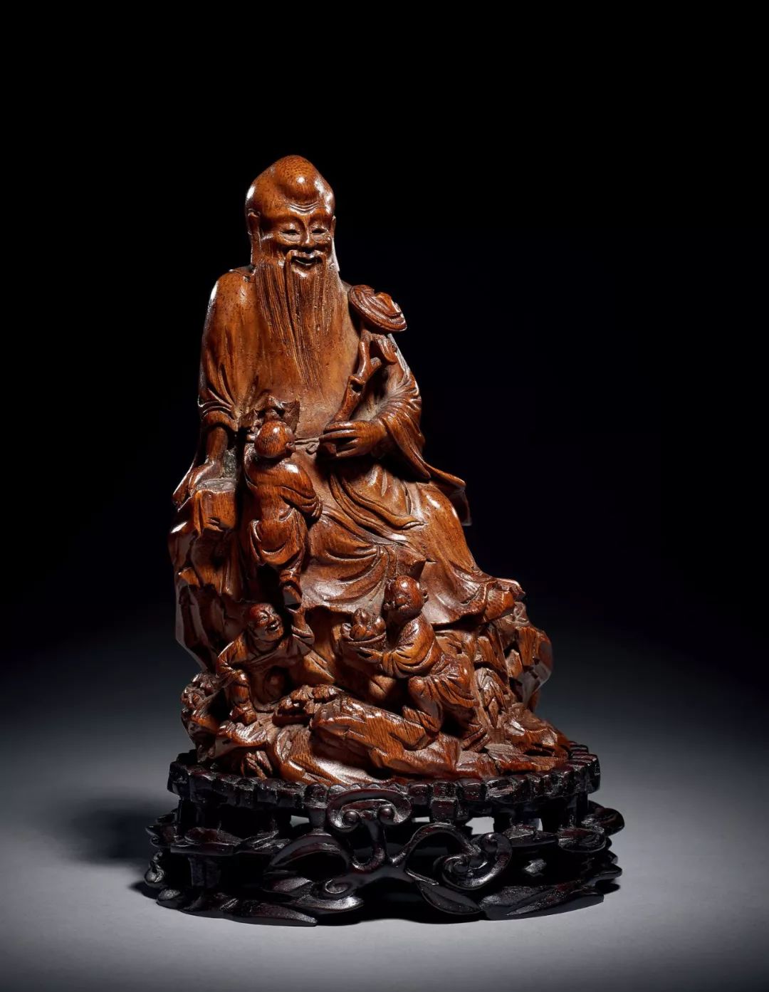 清早期 竹雕百子獻壽擺件
