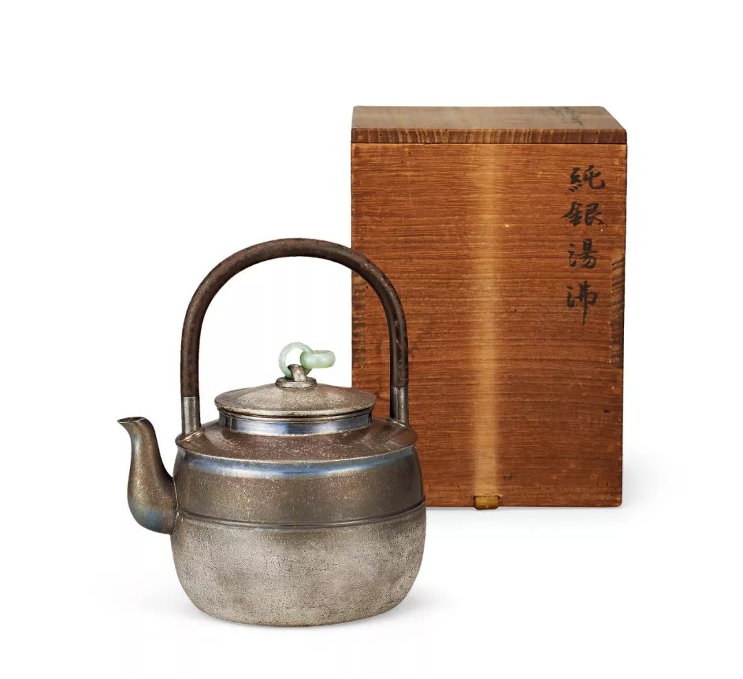 初代竹影堂榮真 純銀胴鈕鐵之手翡翠摘壺(付共箱)