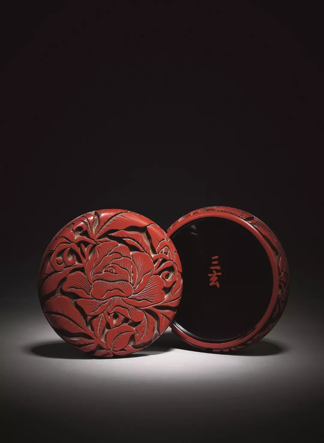 元- 明 剔彩紅牡丹紋香盒