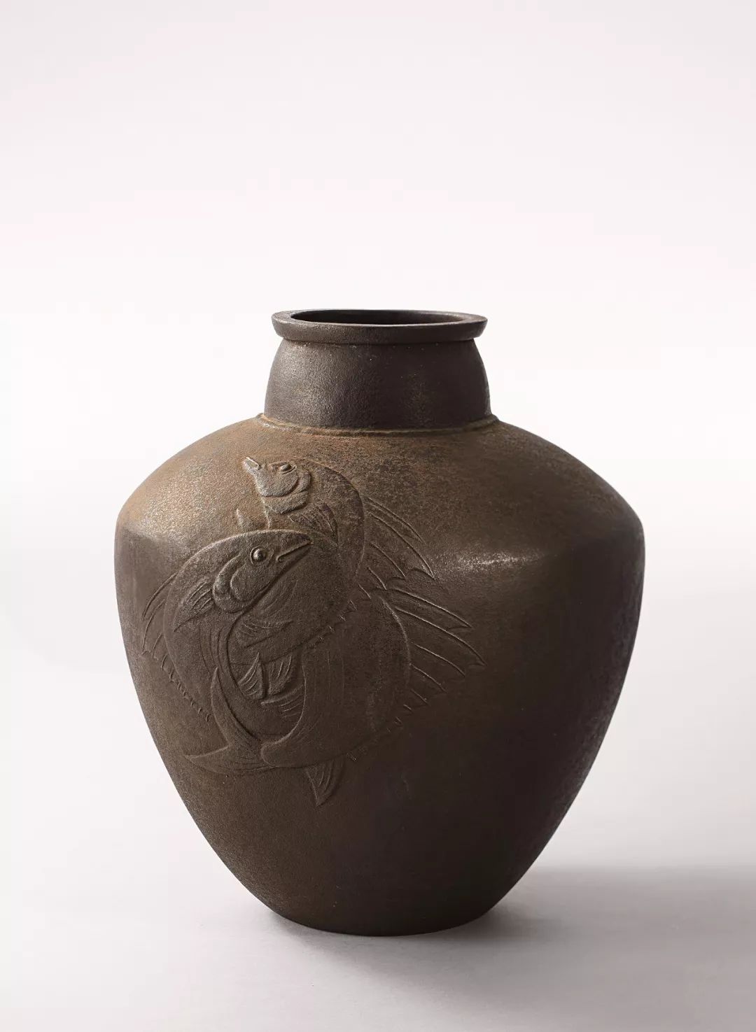 黑瀨宗世 鐵打出雙魚紋花瓶(付共箱)