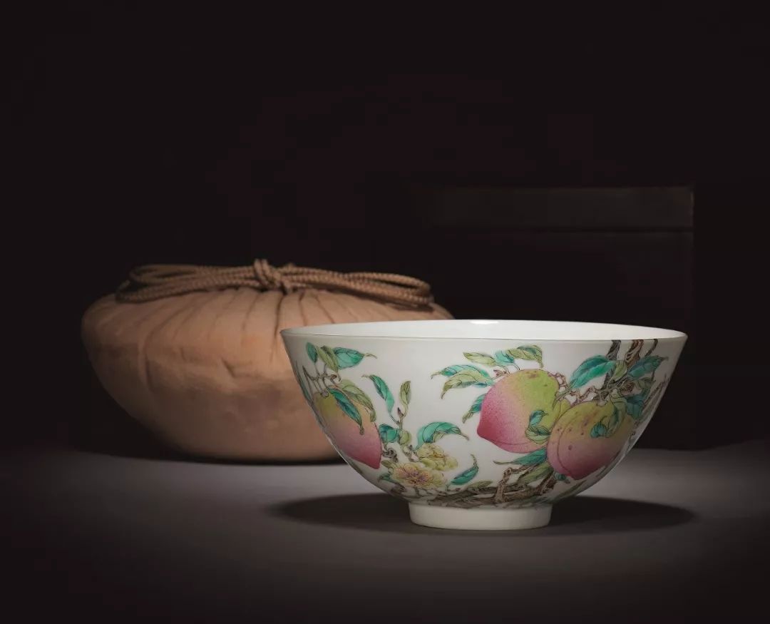 清雍正 御製磁胎洋彩過枝六蟠五蝠圖宮盌