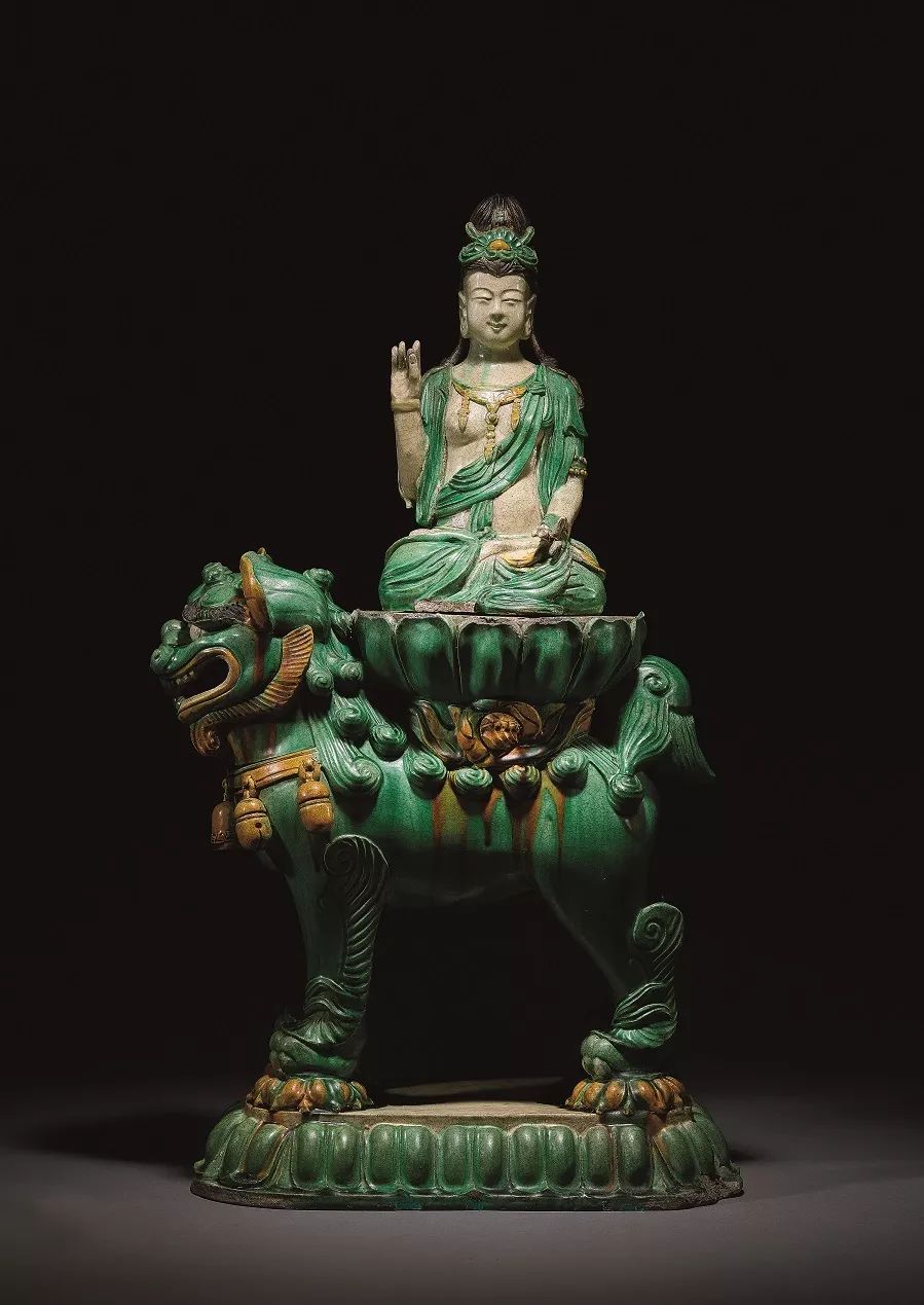 明 素三彩文殊菩薩坐獅像