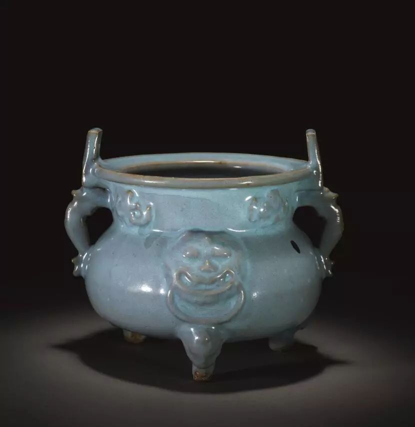 宋- 金 鈞窯天青釉貼塑獸面啣環鼎式三足爐