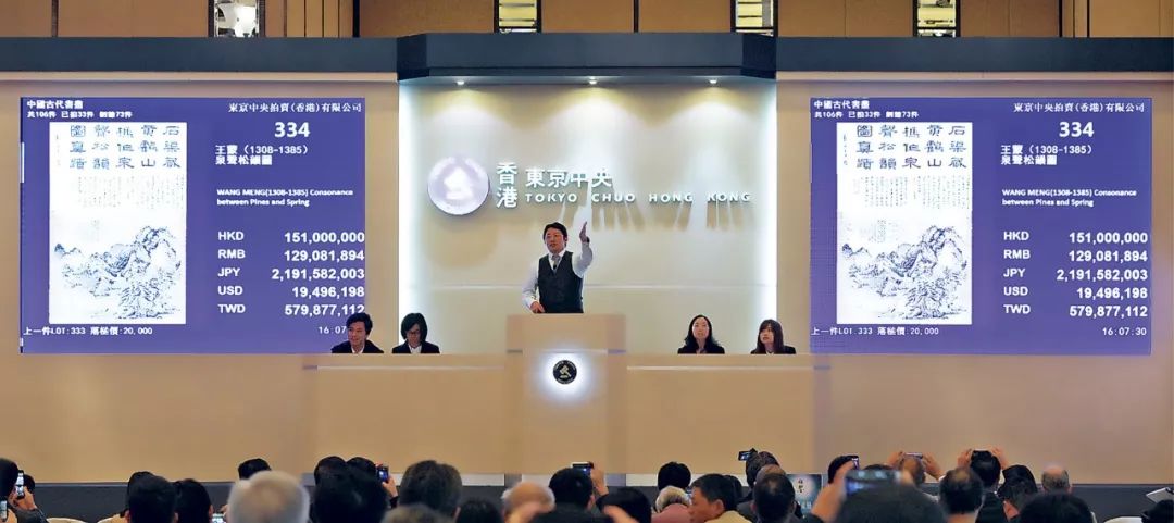 東京中央拍賣於2013年進入香港市場,2017年的一幅王蒙的《泉聲松韻圖》以1.69億港元刷新記錄,成為當時史上平尺最貴的古畫,2018年10月成功在香港主版上市,屬於港股罕見的拍賣行概念股。2019年秋拍中新開設的當代潮玩藝術及珍稀佳釀專場成績不菲,其中一套在亞洲市場上極少出現的麥卡倫璀璨萊儷水晶瓶系列以465萬港幣成交,刷新亞太地區成交記錄。東京中央拍賣這個名字一次又一次帶來驚喜,為現在的拍賣市場注入強心針。