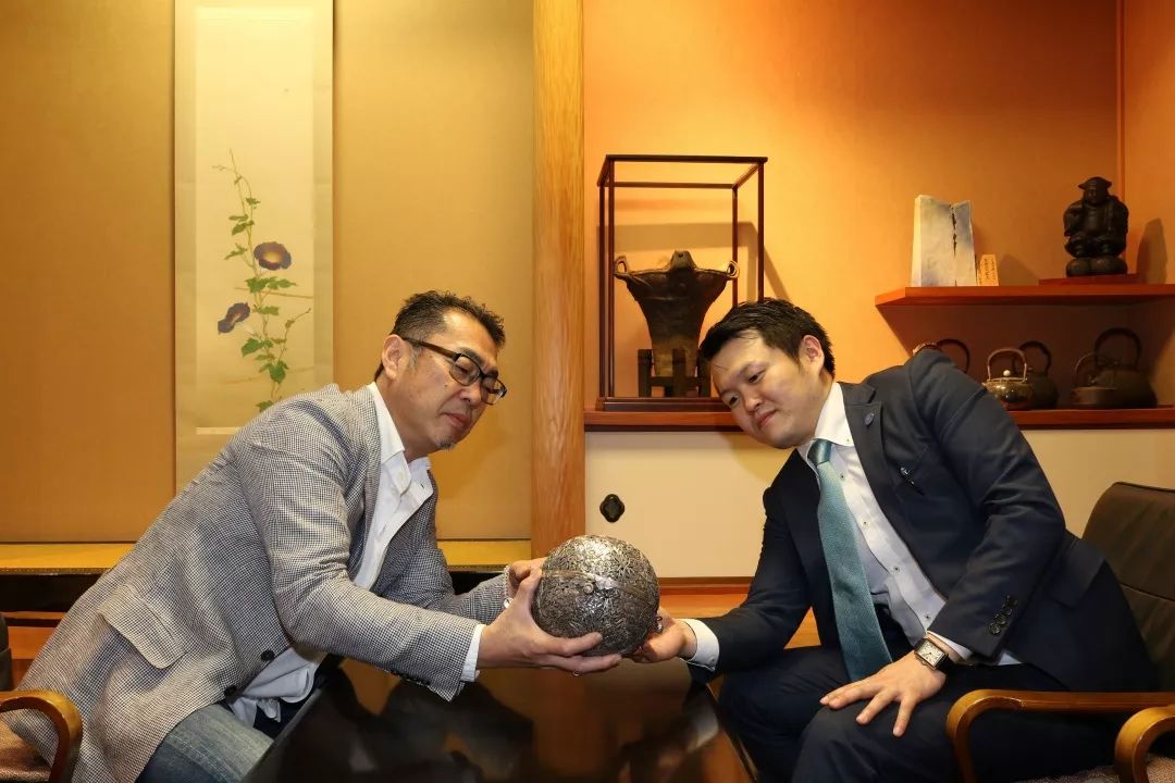 沢田美術成立於昭和時代,適逢有幸親臨位於日本廣島的沢田美術,拜會澤田賀央社長。澤田先生選擇茶道為終生事業:「我一直以傳承茶道文化為己任,轉眼便是30年。茶道這麼多流派,我自己是深造表千家茶道,選擇表千家是因為千家流派最為內斂,也適合我的個性。」說起印象最深刻的茶道會,「應該是20年前吧,我曾於廣島舉行的表千家全國茶道會,當時人數眾多,約3000人參加,我於眾人面前身穿和服展示茶道。除了日本本國,後來我在廈門、上海等地亦同樣進行過類似茶道交流,記憶非常深刻。」