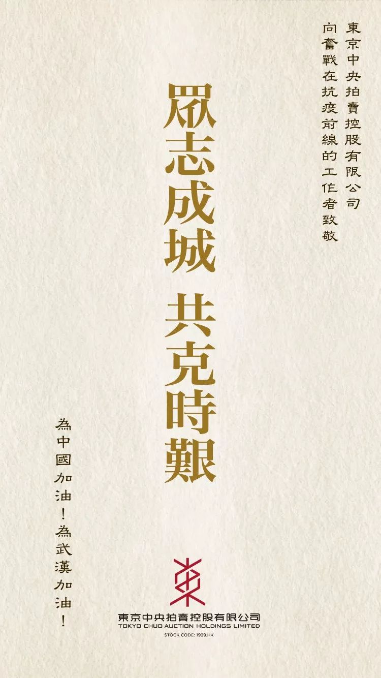 鑒於中國國內近期爆發的新型冠狀病毒肺炎,為保護廣大藝術品愛好者及客戶的健康及安全,東京中央將延期舉行原定於3月9日-13日在東京所舉辦的2020春季拍賣會。延期後的拍賣會日期將根據疫情的控制情況,稍後於東京中央拍賣公眾號及官網另行公怖。