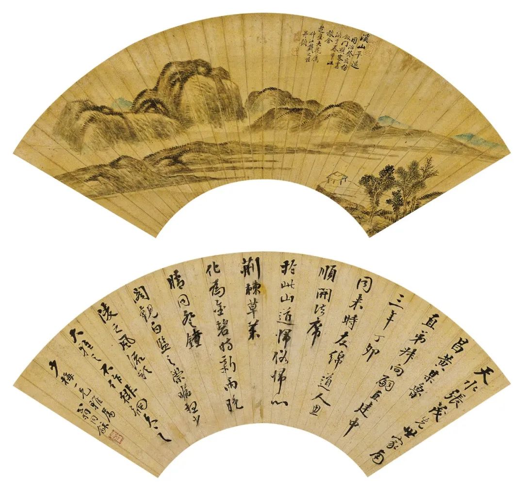 翁同龢 (1830-1904)、戴以恆(1826-1891) 行書題固陵寺壁、溪山平遠