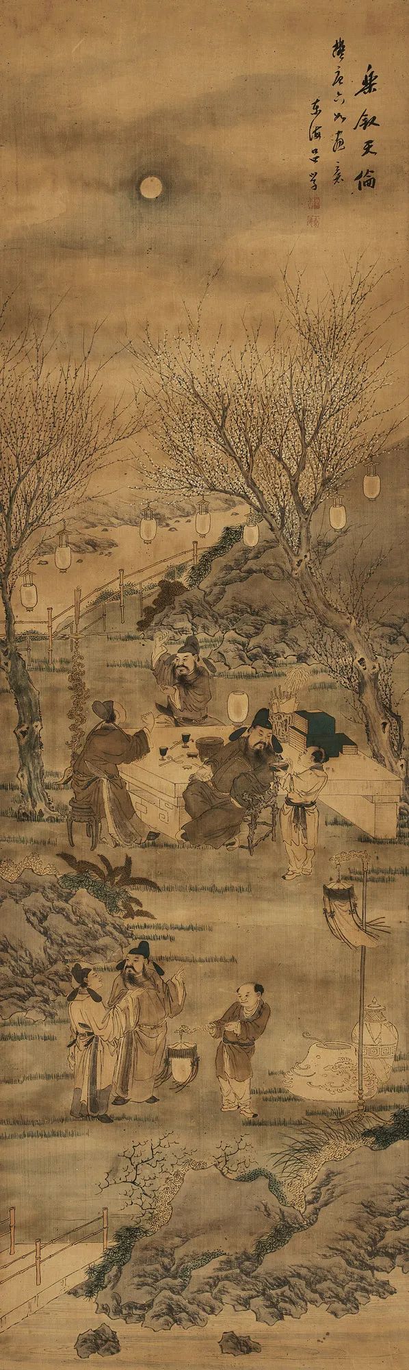款識:樂敘天倫。擬唐六如畫意。東海呂學。