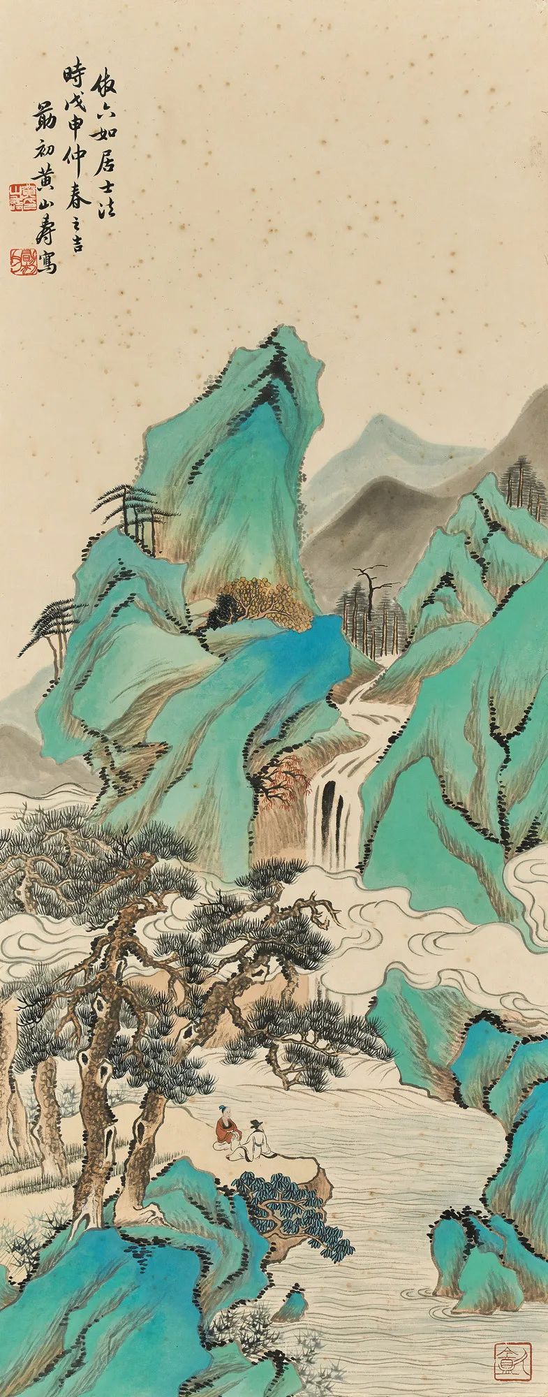 款識:仿六如居士法,時戊申仲春之吉,勖初黃山壽寫。
