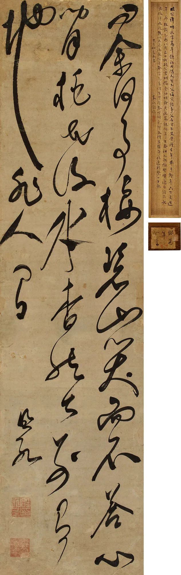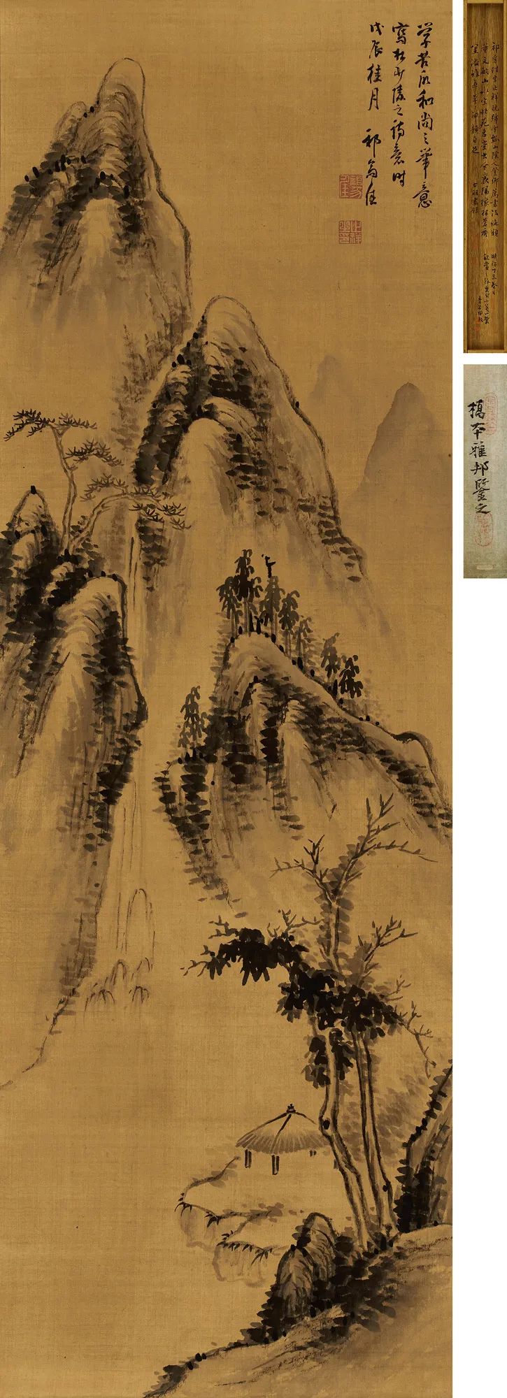 說明:題盒者村田香谷(1831-1912) 幕末至明治時代畫家,文人畫家村田東圃之子,師從貫名海屋,三渡清國(中國),師從張子祥、胡公壽,在關西南畫壇既有盛名。鑒藏者橋本雅邦(1835-1908)近代日本畫家,是最後一位以狩野派風格繪畫的畫家。