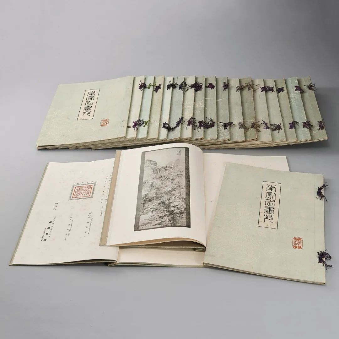 「南宗名畫苑」,審美書院出版,為小川寫真製版所攝製的珂羅版印刷,於明治四十三(1910)年印製完成,歷經數年。此套圖錄,搜羅眾多日本國內所藏宋元明清文人畫與日本南畫,各圖附解說頁,印製精美,為研究文人畫之重要參考資料。如今市場上已少見。