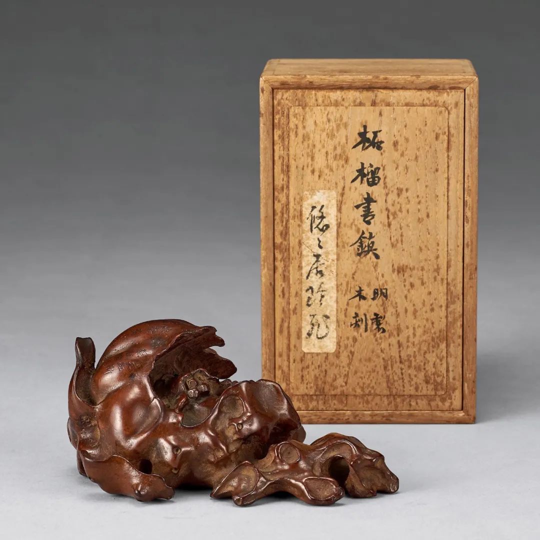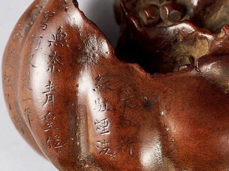 清 雲碧款天然木雕石榴形書鎮