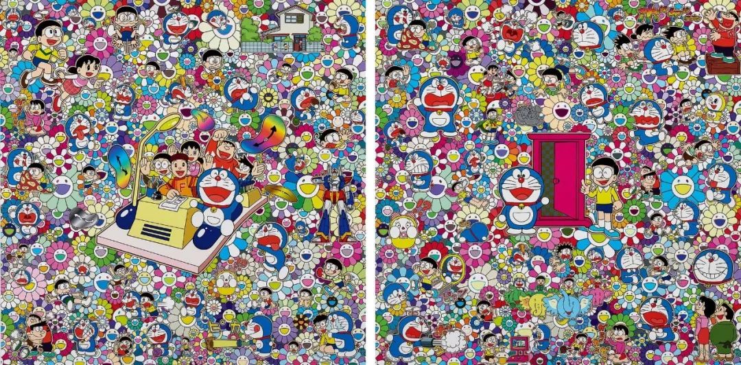 村上隆的以上三件作品,靈感均來源自《哆啦A夢》。
