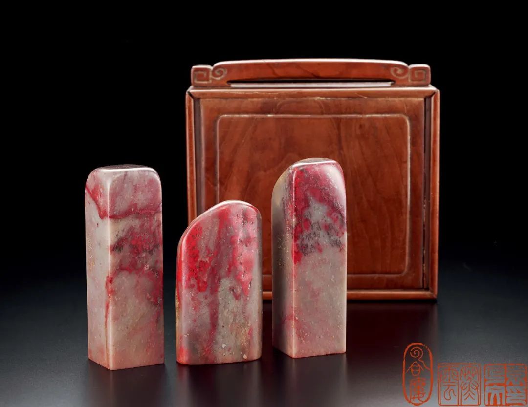 張越丞款昌化雞血石套印三方