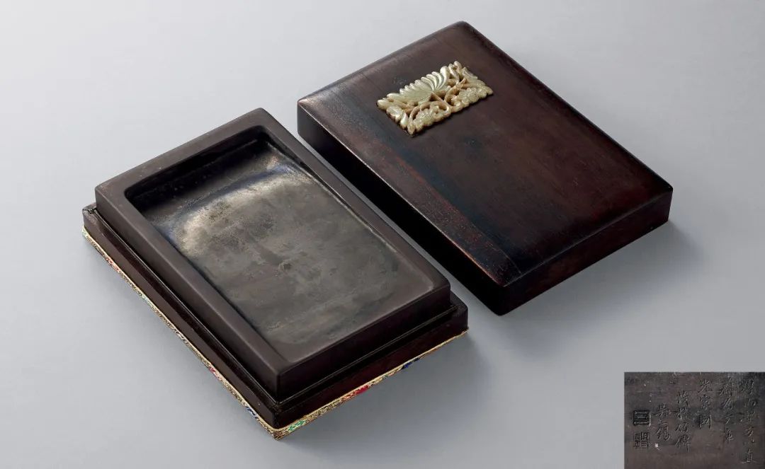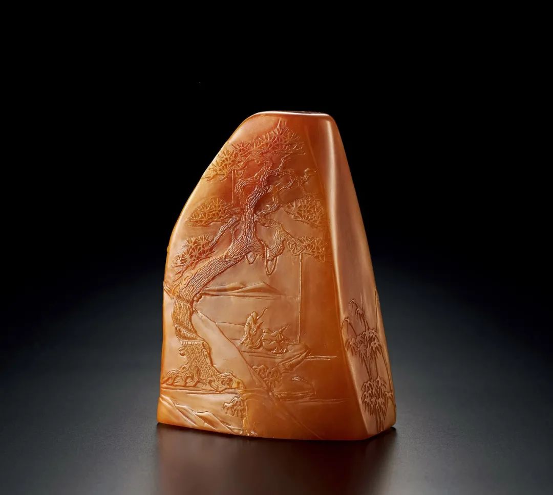 注:附原配紫檀浮雕山水紋底座